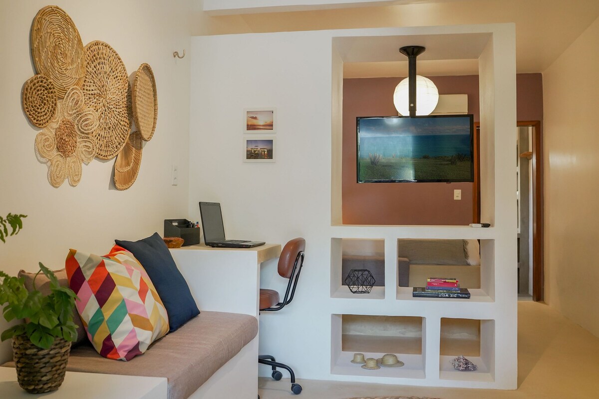 Ce bel appartement a été planifié pour vous qui souhaitez passer du temps à Jeri pour travailler depuis un bureau à domicile ou simplement profiter de vacances avec tout le confort d'un petit appartement complet : Coin ✔ travail avec chaise de bureau super confortable ✔ Climatisation et ventilateur Wi-Fi ✔ rapide 130 Mbps ✔ Télévision connectée 32' pivotante avec NETFLIX ✔ Machine à café électrique ✔ Cuisine entièrement équipée ✔ Matelas avec ressorts de poche À seulement 10 minutes à pied de la plage et du centre-ville !