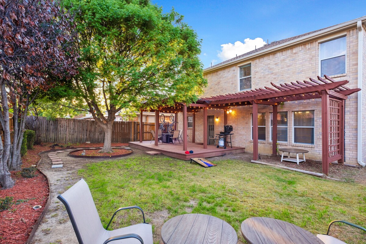Maison luxueuse dans le centre de DFW ! Cette maison de 3 000 pieds carrés comprend un loft de divertissement, une cuisine entièrement équipée et de nombreux équipements. Chambre ✔ principale avec lit King Size, TV et espace de travail. ✔ Deux salles de jeux séparées. ✔ Proche d'un parc avec étang et d'un lac. Patio ✔ extérieur avec cheminée et barbecue. ✔ Table de billard, jeu de fléchettes interactif, Xbox ✔ Parfait pour les accessoires de réseaux sociaux Situé dans un super quartier calme ! À quelques minutes des meilleurs restaurants, centres commerciaux, du stade AT&T et de The Epic.