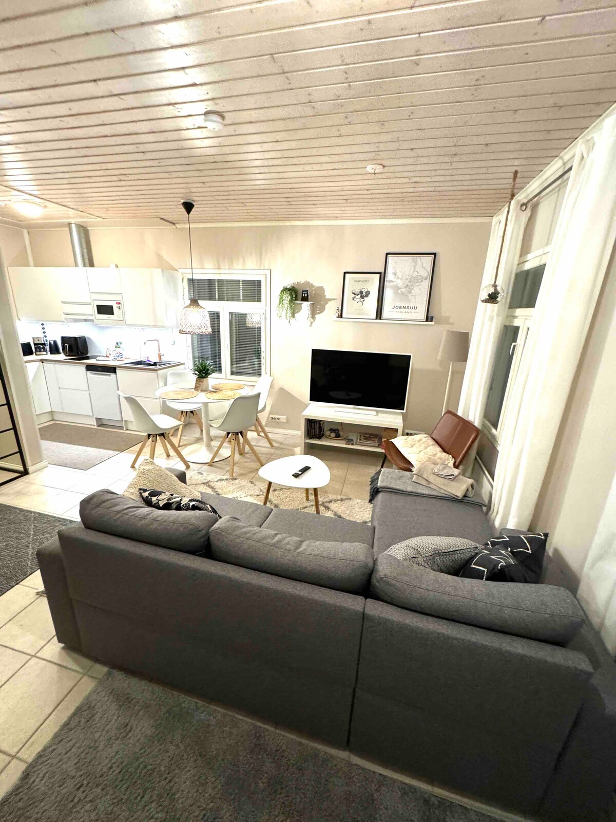 Un studio confortable de 35,5 mètres carrés situé dans le centre-ville de Joensuu. Le studio se trouve au deuxième étage d'un immeuble paisible. Il y a une place de parking et un ascenseur. Linge de lit, serviettes, savon et shampoing, sèche-cheveux, lave-linge séchant, ustensiles de cuisine, lave-vaisselle, réfrigérateur, micro-ondes, four et cuisinière, machine à café, bouilloire, grille-pain, une télévision connectée de 43 pouces et une connexion Wi-Fi sont inclus. Pour les tout-petits, il y a un lit parapluie et des jouets.