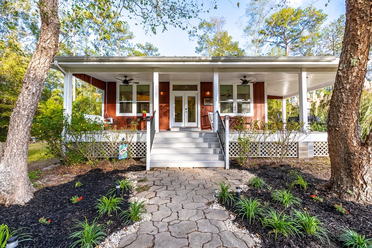 Chalet de vacances nouvellement construit à quelques pas de la plage de Waveland. Mobilier côtier, grands porches, espace de divertissement couvert, foyer personnalisé. À quelques pas du phare, du Veterans Park, des restaurants et de la plage (0,3 mille) ! Cuisine complète, Internet par fibre optique, lit de porche, nombreux sièges extérieurs, barbecue, équipement de plage, jeu de sacs de haricots et plus encore. Faites vos valises et laissez vos soucis derrière vous ; embrassez la tranquillité et la joie. Nous avons une zone clôturée pour votre animal de compagnie et nous faisons un don au refuge local. Chargeur VE !