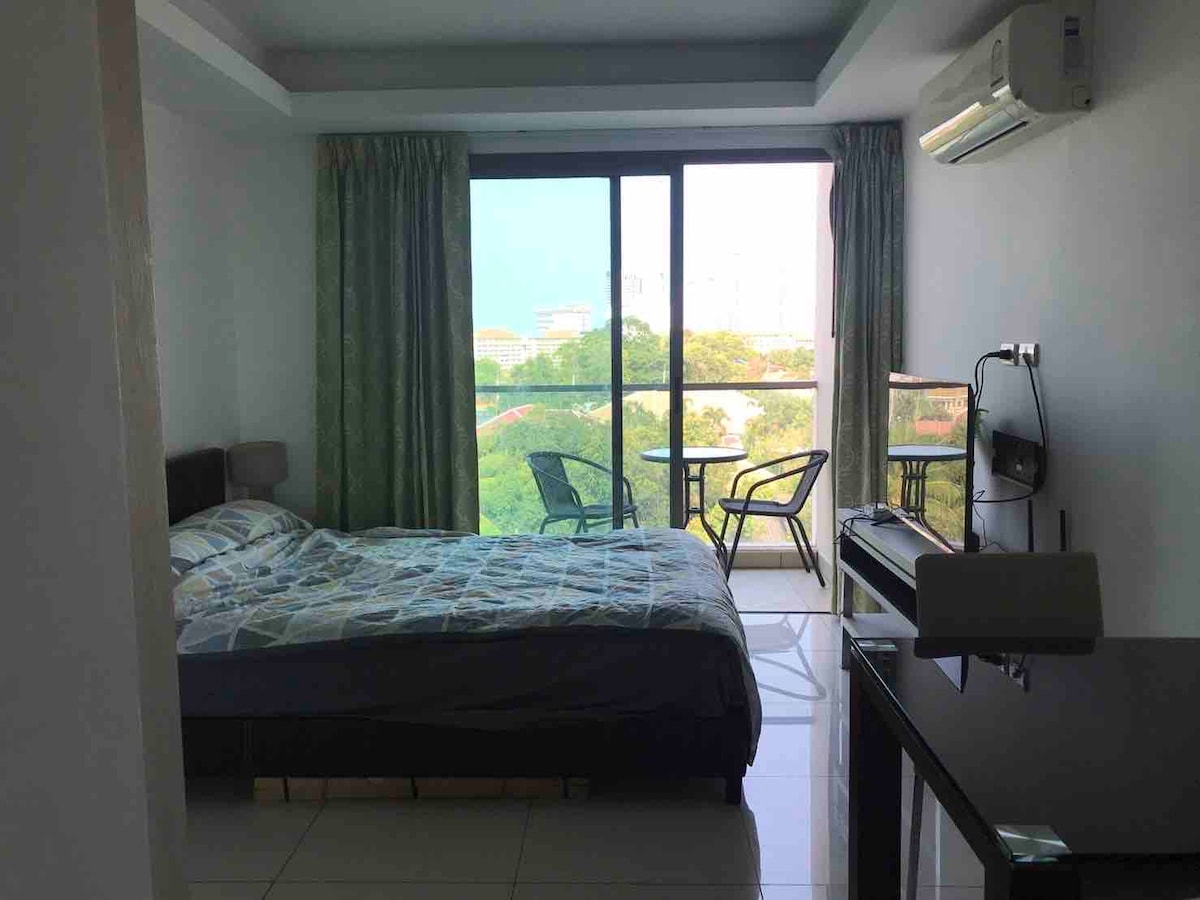40e étage Studio de 26 m² (lit king size), avec une vue magnifique sur la mer Notre chambre se trouve dans la copropriété Unixx. - À 2 minutes à pied des rues animées pour une cuisine locale savoureuse - à 7 min à pied de la grande jetée et de la piste de karting ; - À 10 min de la rue piétonne. - À 20 minutes à pied de la plage. - 2 piscines/sauna/salle de sport. - Superbe vue sur le jardin suspendu - À 31 km de l'aéroport international U-Tapao Rayong-Pattaya.