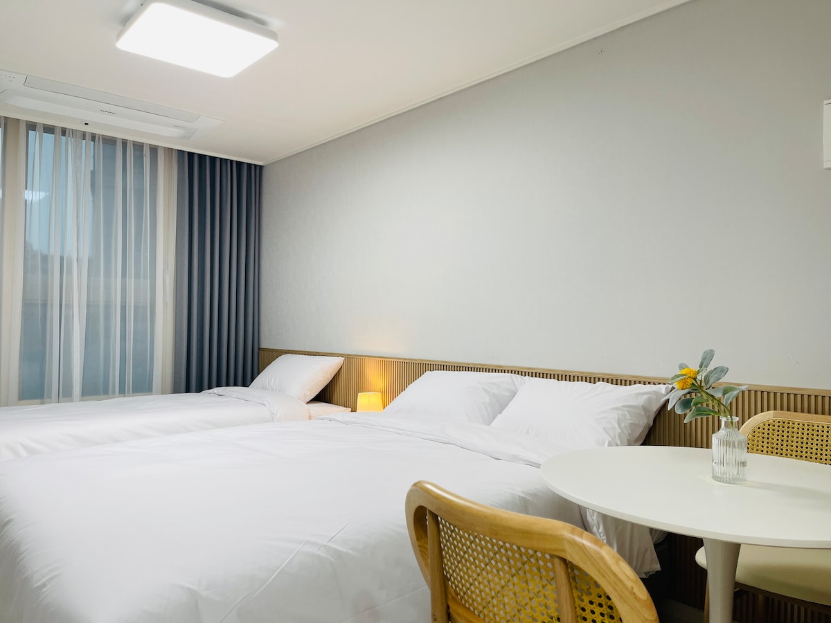 Une résidence nouvellement construite à moins de 3 minutes de 2 stations de métro *Réception, bagagerie et salon des voyageurs : B1F (personnel anglophone et sinophone disponible, service de petit-déjeuner (payant)) * propriété non-fumeur. amende : 150 000 won. *Une machine à café et une capsule de café de bienvenue, un bidet , un purificateur d'eau potable *Tout ce dont vous avez besoin, comme à la maison. *2 voyageurs utiliseront un lit. Si vous préférez des lits séparés, veuillez en faire la demande à l'avance. (payant) *Pour 3 personnes ou plus, un canapé-lit sera installé comme un lit.