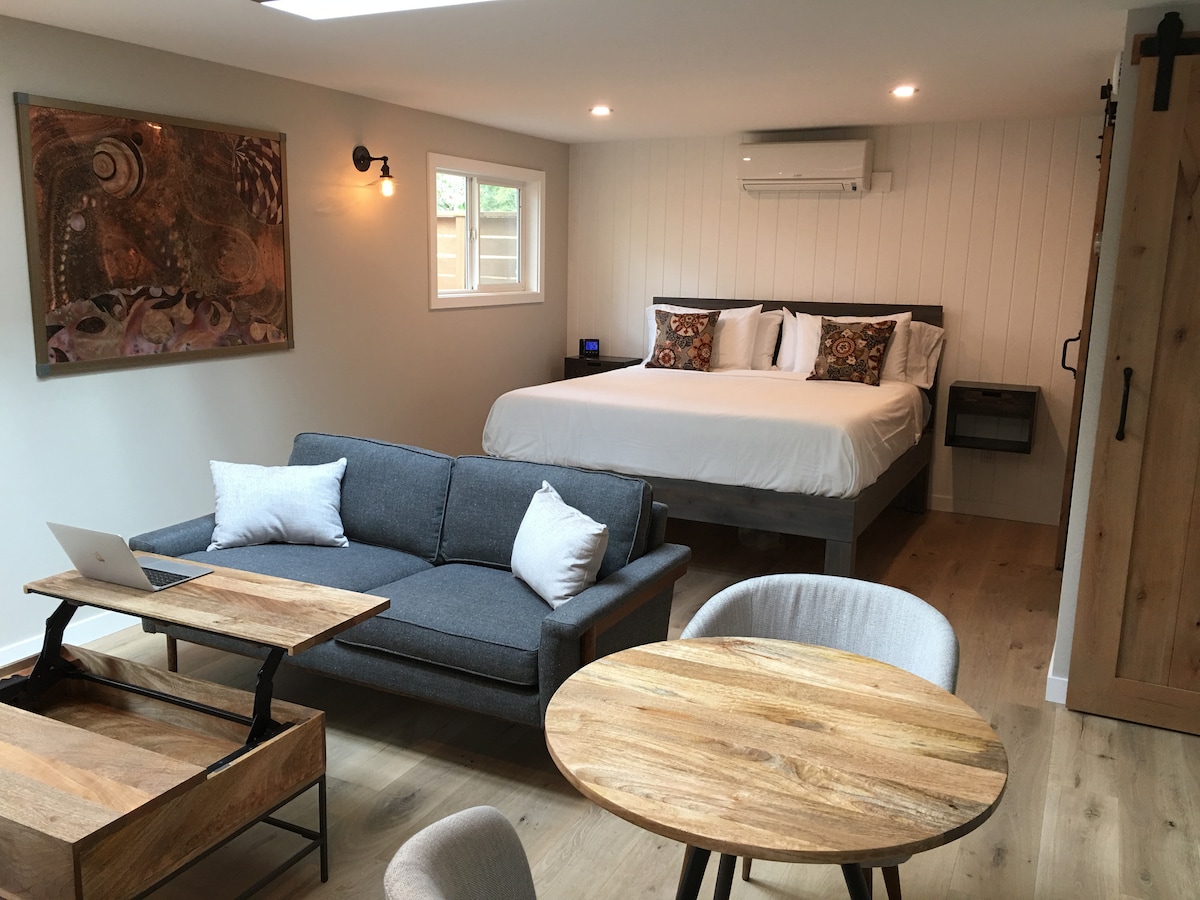 Construit comme un studio d'art contemporain, cet espace offre une abondance de lumière naturelle et un plan d'étage ouvert. Il est accessible à pied • impeccable • joliment aménagé avec des touches personnelles. Terrasse privée • ambiance accueillante • art original et un hôte 5 étoiles. Profitez d'une cuisine complète • salle de bain complète • parking privé et lit confortable. Débranchez, détendez-vous et déstressez ou partez dans n'importe quelle direction pour découvrir des activités et des attractions sans fin dans ce quartier animé de S.E. Eugene. * Parfait pour les adultes (bébés et adolescents bienvenus)