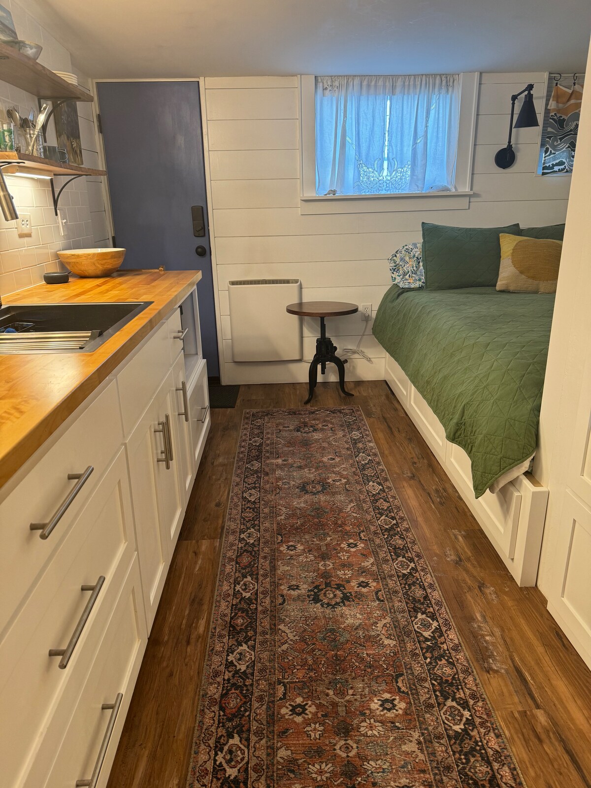 Studio lumineux avec loft au deuxième étage dans une rue bordée d'arbres dans le quartier populaire de Jefferson Westside. Parfait pour 1 à 2 personnes. À distance de marche d'une variété de restaurants, cafés, dispensaires et brasseries. Accès rapide à l'Université de l'Oregon, à Hayward Field et au centre-ville d'Eugene. Le studio est attaché à la maison principale mais dispose d'une entrée privée et offre un enregistrement sans contact. Lit Queen Size, salle de bain complète et cuisine ainsi que Wi-Fi, climatisation et parking gratuit sur promesse