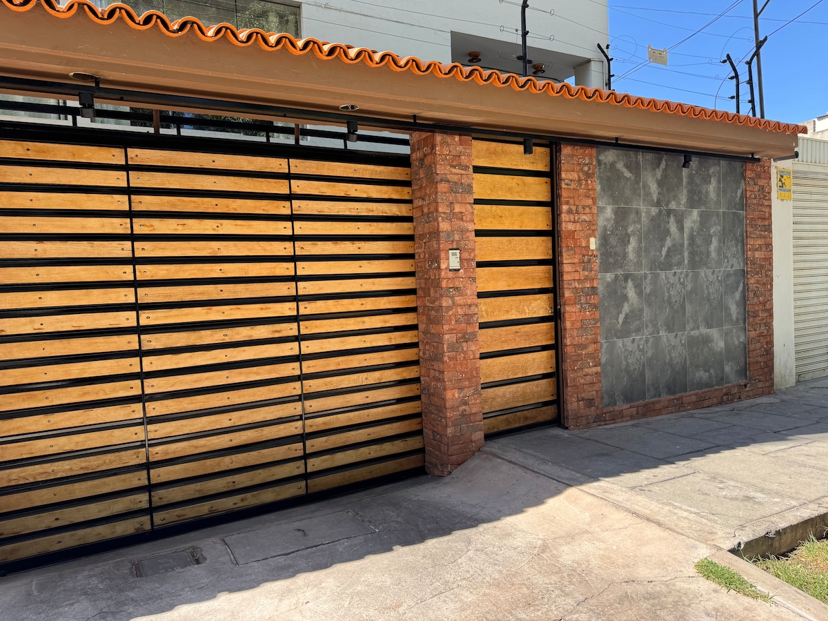 Bel appartement au 4ème étage, la meilleure vue sur l'Alameda Bolognesi, quartier calme, situé dans le quartier traditionnel de Yanahuara à 10 minutes à pied du centre historique de la ville, à 5 minutes de la Plaza de Yanahuara et à 10 minutes des centres commerciaux et des banques. 3 chambres confortables avec lit Queen, salle de bain privée, familiale et sociale, bureau, cuisine petit déjeuner, patio, salle à manger et balcon vers l'Alameda et Club Inter. Dans l'après-midi, depuis le balcon, vous vivrez la nature avec une bande de perruches et un espace vert.
