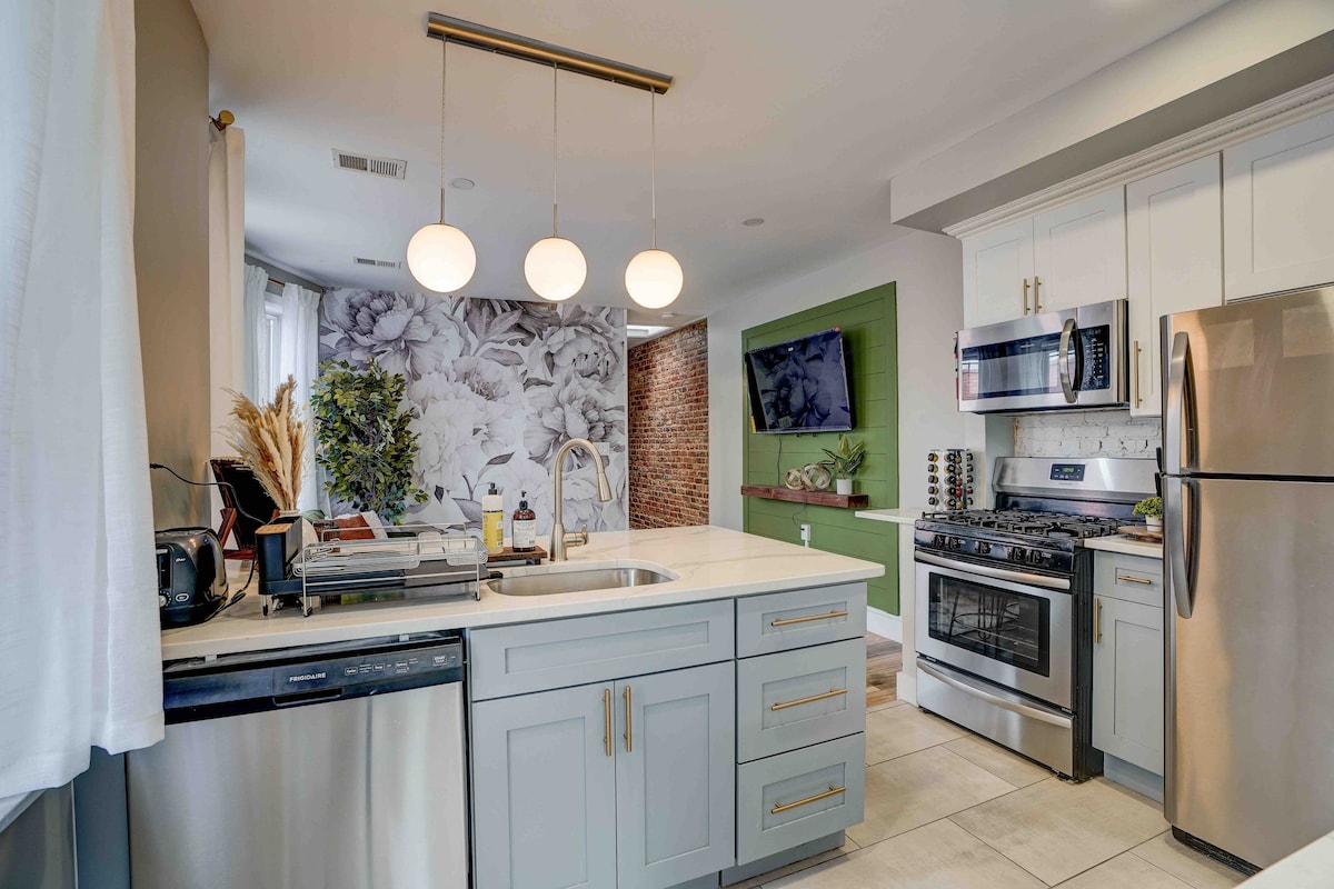 Bienvenue dans votre retraite de Jersey City, à seulement 10 minutes à pied du train PATH et à quelques pas de l'Université Saint-Pierre ! Cet appartement calme et élégant dispose de 3 chambres confortables, de 2 salles de bain (avec une baignoire pour les plus petits), d'un salon spacieux avec une fresque murale personnalisée de Brandon Fischer, d'un coin repas lumineux et d'une cuisine avec un coin repas et un espace de travail. Un mélange parfait de confort, de charme et de commodité pour votre séjour près de New York !