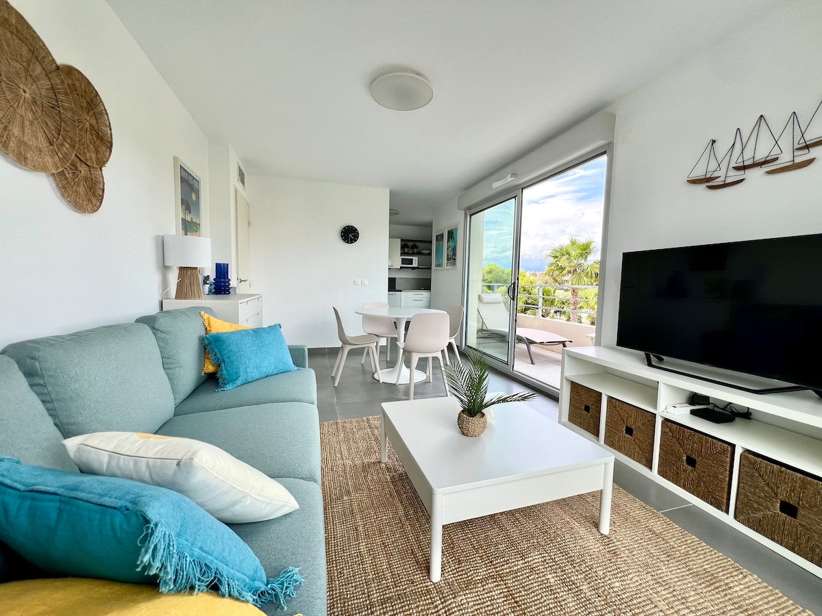 T2 Moderne +Terrasse 2min Plages de Juan-les-Pins!