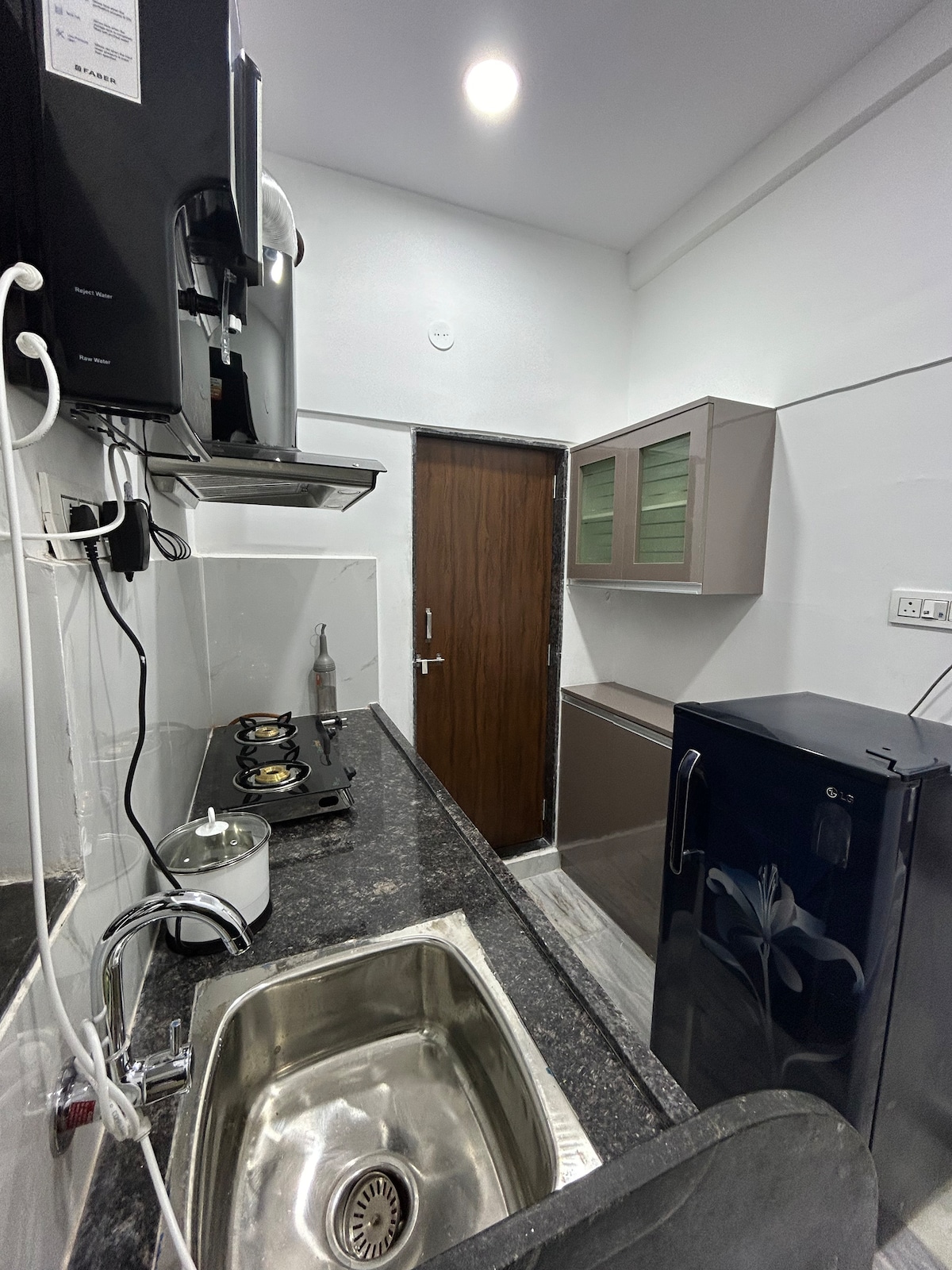 Évadez-vous dans notre élégante suite de 2 chambres dans le quartier huppé de Banjara Hills à Hyderabad. Parfait pour les familles ou les voyageurs d'affaires, ce logement moderne peut accueillir 4 personnes. Profitez d'une connexion Wi-Fi haut débit, d'une cuisine entièrement équipée et d'un balcon privé. Situé à proximité de HITEC City, des meilleurs magasins et restaurants, c'est votre base idéale. Sécurisé, privé et élégant. Proche des meilleurs hôpitaux, cet environnement paisible est idéal pour les patients et leurs familles. Remarque : il s'agit de l'un des deux logements de l'immeuble, situé au NIVEAU INFÉRIEUR