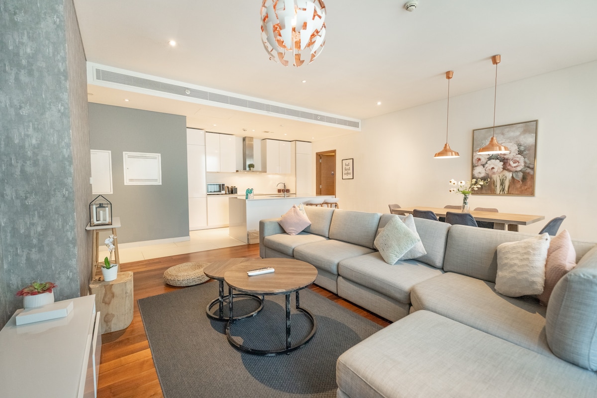 Ce magnifique appartement de deux chambres est méticuleusement construit pour que vous vous sentiez chez vous, de manière extravagante et élégante. Il est situé dans le quartier le plus populaire et central de Dubaï, Business Bay. L'appartement comprend une cuisine entièrement équipée, un coin repas, un salon moderne et agréable avec une télévision connectée, deux chambres avec un lit Queen Size confortable et un balcon meublé avec vue sur le canal de Dubaï. Cet appartement est idéal pour les personnes qui souhaitent vivre des séjours modernes.