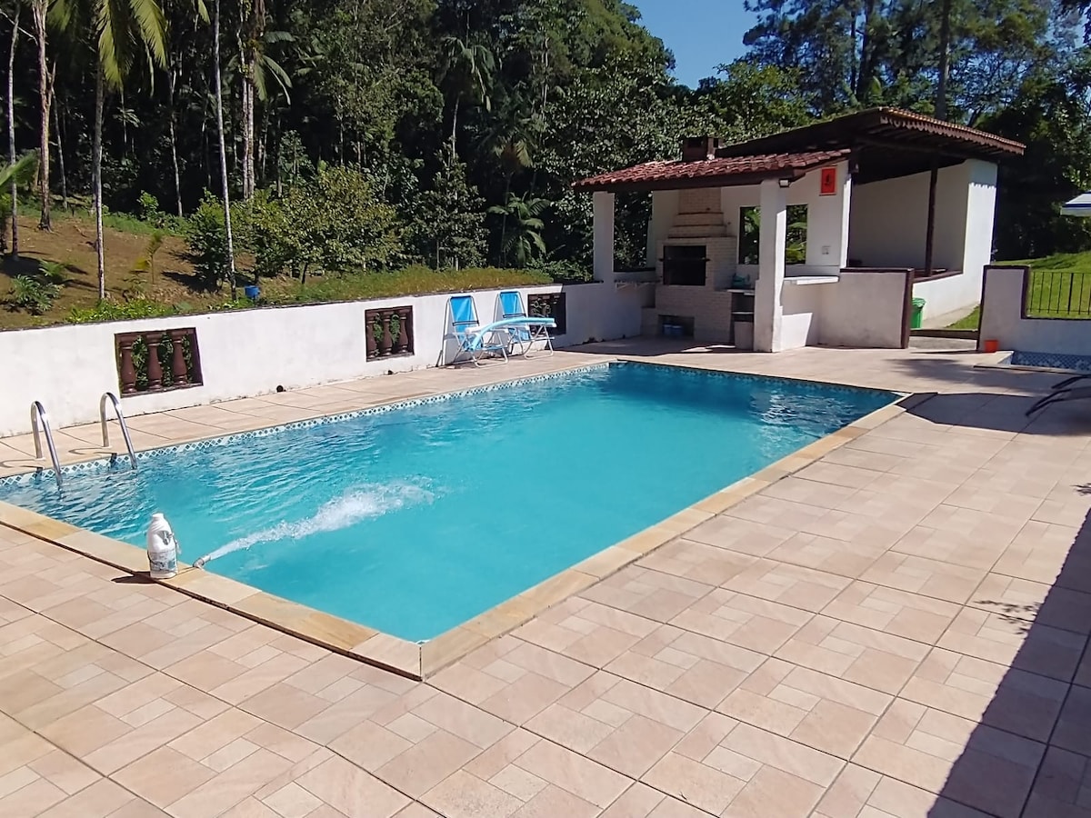 Cueillez des souvenirs et renouez avec la nature au Sítio Mata. Chalet complet idéal pour le repos, les loisirs et le bureau à domicile dans la ville de Juquitiba entourée de la forêt atlantique. Piscine et espace sportif. Redódromo. Espace gastronomique et coin feu de joie, sentiers dans les bois. Barrages, rafting et cascades à proximité. Aire de jeux pour enfants. Emplacement facile d'accès - à 2 km de l'autoroute. Espace sûr et accueillant pour LGBTQI+. Wifi. Nous servons un petit-déjeuner simple fait maison le week-end.