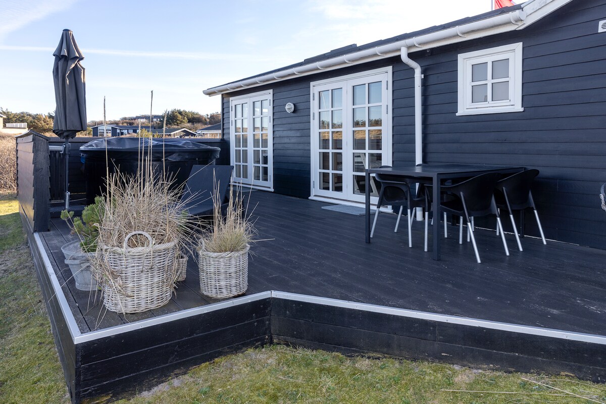 Dejligt sommerhus med plads til 5-7 personer beliggende i et roligt område ved Vejers Strand. Der er 1½ km til stranden på 87 m² heraf udgør annekset ca. 13 m². Sommerhuset ligger på en lukket grund på 2190 m² naturgrund med legeredskaber. Der er en dejlig stor lukket terrasse med havemøbler, 2 solsenge og bænk. 1 husdyr kan medbringes men må ikke være i sofaen. I 2020 gennemgik sommerhuset en delvis renovering. Rygning ikke tilladt.