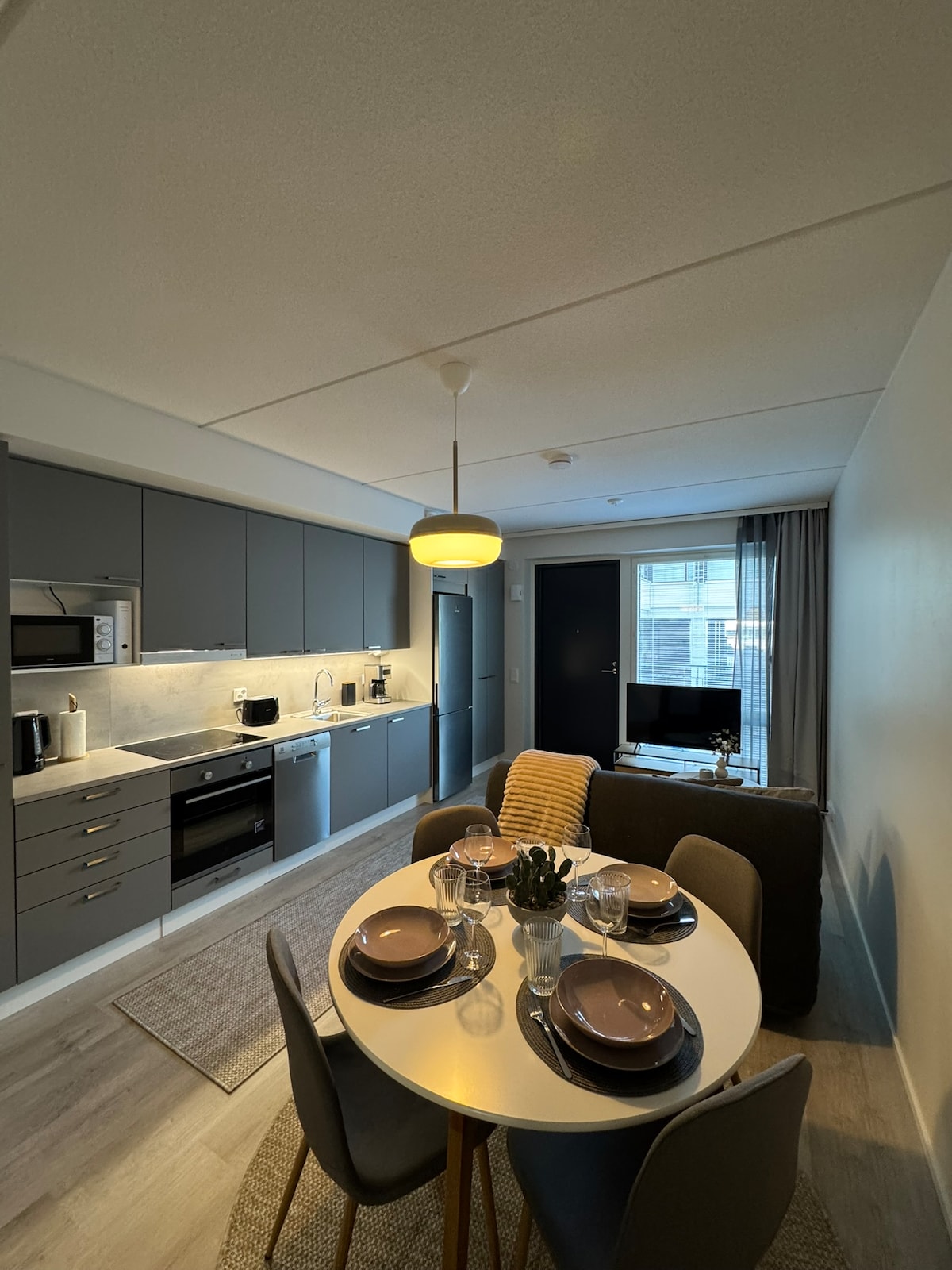 Tässä keskeisellä paikalla sijaitsevassa kohteessa olet lähellä kaikkea. Uudehko ja tyylikkäästi sisustettu 54m2 kerrostalohuoneisto Jyväskylän ydinkeskustassa. Asunnon makuuhuoneessa parisänky ja olohuoneessa levitettävä futon-sohva (140cm). Lisäksi 140cm ilmapatjalle majoitus max. 2 hlö ja retkisänky +1hlö. Kohde sopii hyvin lyhyt- tai pitkäaikaiseen majoitukseen. Asunnosta löytyy pyykin- ja astianpesukoneet sekä lapsiperheille ilman lisämaksua matkasänky, syöttötuoli ja vaipanvaihtoalusta.
