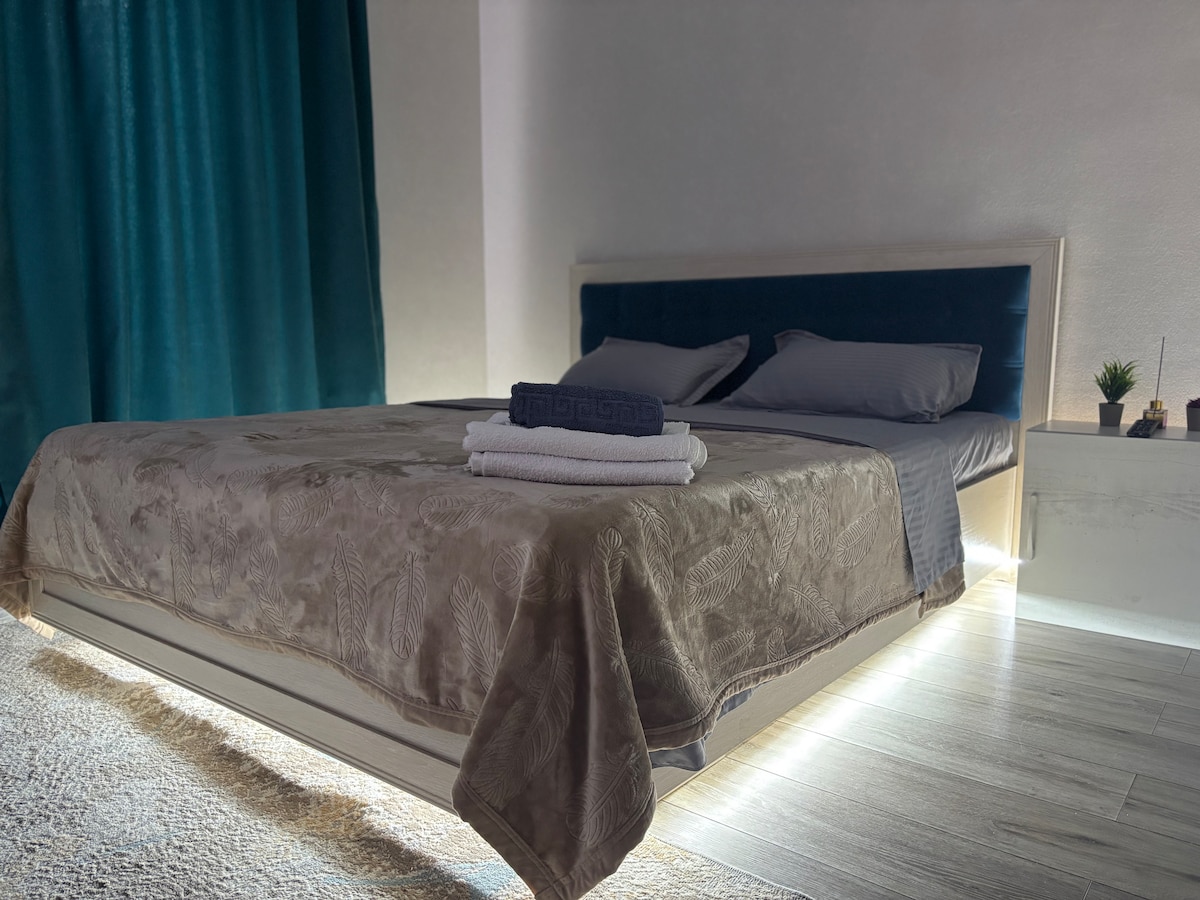 Découvrez le confort au cœur d'Astana ! Bienvenue dans votre maison loin de chez vous : un appartement élégant d'une chambre à quelques minutes des principales attractions de la ville. Ce que vous allez adorer : • Lit confortable avec des draps propres • Wi-Fi haute vitesse et télévision connectée • Cuisine entièrement équipée + coin repas • Environnement calme : jardin botanique et parcs • À distance de marche des boutiques et des transports en commun ; • Accès facile au stade Astana Arena, à la Barys Arena et à d'autres installations sportives. Réservez votre séjour et profitez-en !