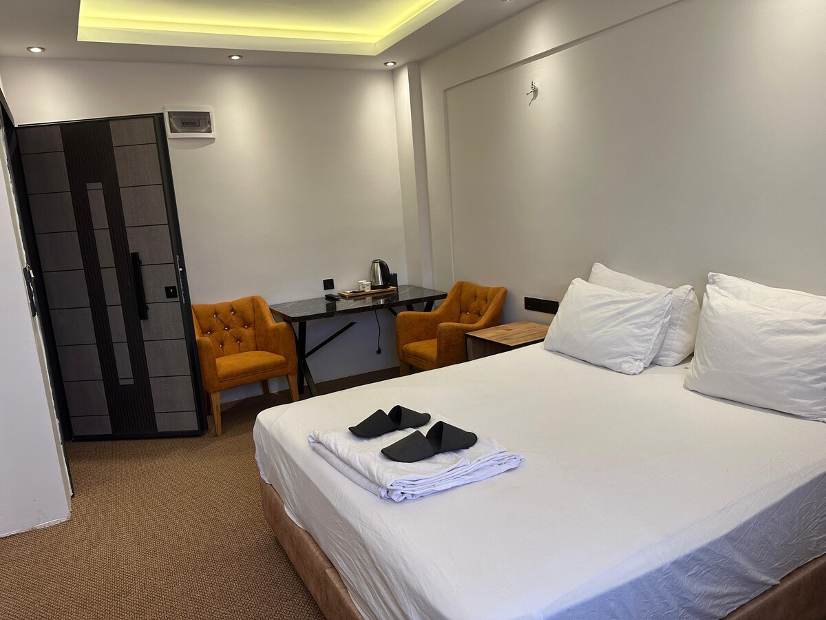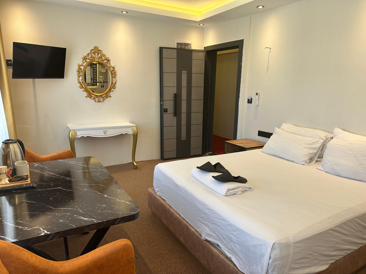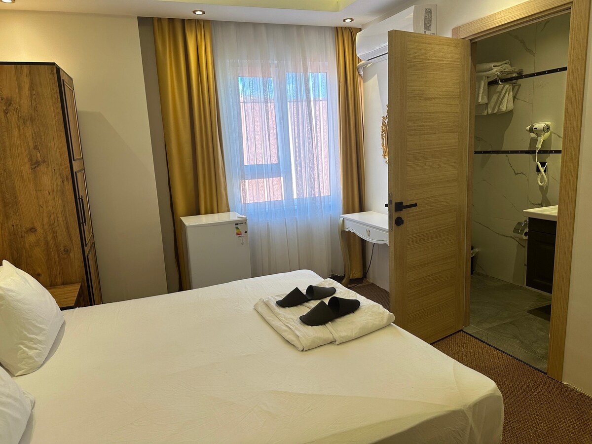 Situé dans le centre de Kadikoy, notre logement nouvellement construit offre une vie moderne et confortable. La chambre et salle de bain sont situées ensemble. Le logement entier est le vôtre exclusivement. Il n'y a pas d'espace commun. Tous les articles sont renouvelables. Puisqu 'il y a une porte en acier, nous fournissons un service d'hébergement plus sûr. La chambre dispose d'un grand lit double, télévision, climatisation, réfrigérateur, table, fauteuil, armoire, table de chevet, bouilloire et plateau de bienvenue.