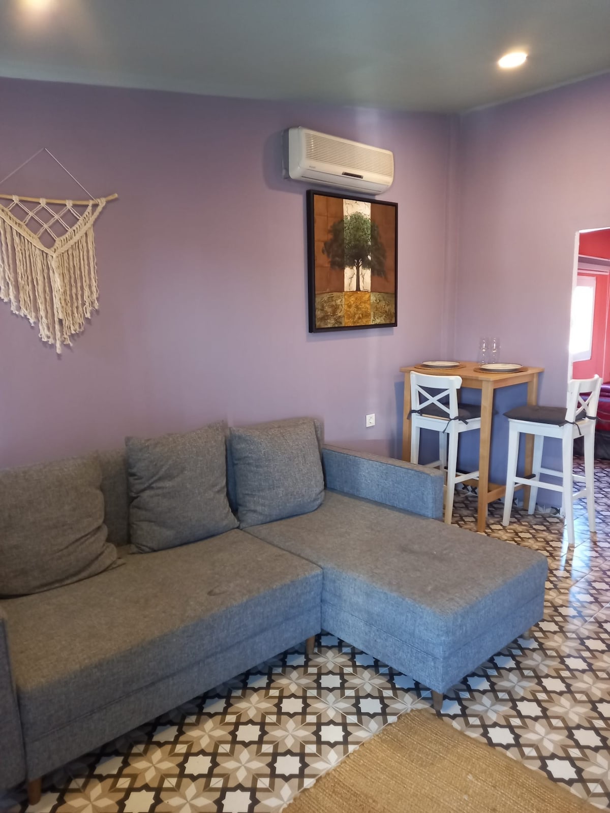 Appartement penthouse calme avec jacuzzi et terrasse, situé au centre, fermé à la circulation des véhicules. (La cheminée est visuelle) (Le problème d'eau chaude du jacuzzi a été résolu.) Le problème du rideau sur la petite fenêtre a été résolu.
