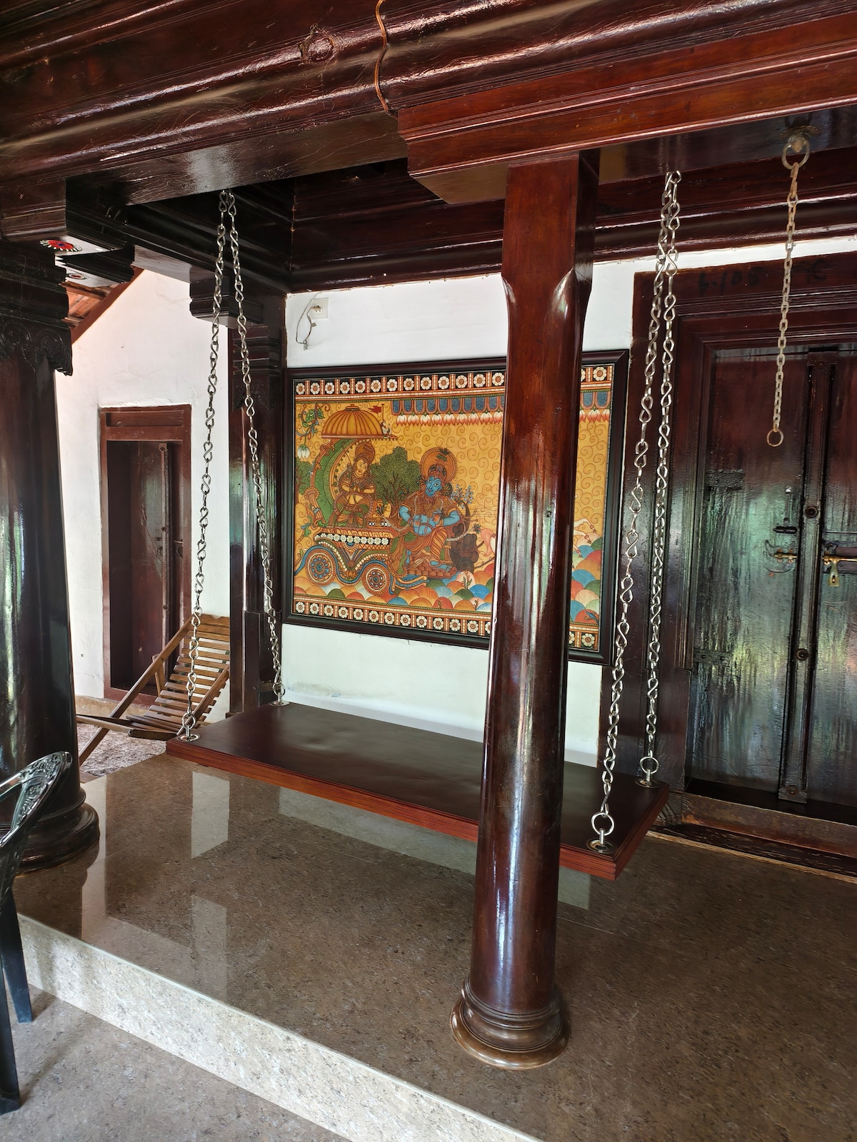 Unwind at this stunning and unique bungalow in the middle of a bustling city. The house was lovingly built with sanded granite floors, high-beamed ceilings, and antique details for a luxurious yet charming feel. Enjoy the sunset while sitting in the patio and the garden. The house is located in the enclave of a posh colony in Calicut, with unspoilt natural beauty. It is located 12 mins away from the Calicut beach & 5 mins from the main market, with convenience for parking & public transport.