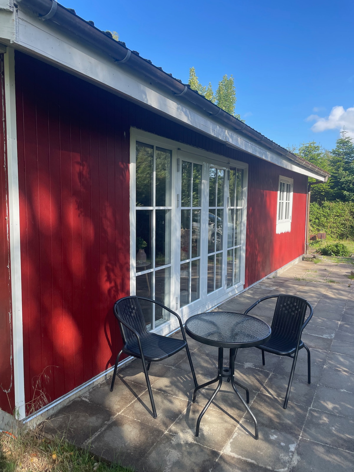 When you step down the stairs to this turquoise blue cottage, it is as if you are stepping into another world. Here there is peace, privacy and you live in the middle of nature. The garden is home to lizards and is planted with lots of different rose bushes that give the most wonderful scent in the summer. On the windless days, you can hear the flapping of the birds' wings and if you listen carefully you can also hear the porpoises that swim past along the coast in the evening hours.