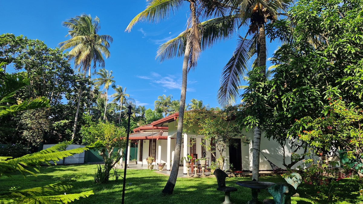 Nichée dans un coin serein de la côte sud du Sri Lanka, notre maison d'hôtes spacieuse et familiale offre un mélange parfait de confort, de culture et de charme côtier. À quelques minutes des rives dorées des plages de Bentota et de Moragalla et à distance de marche du temple vénéré de Kande Vihara. Entouré d'une végétation luxuriante et des sons apaisants de la nature, c'est un havre idéal pour les familles et les couples à la recherche de détente et d'expériences locales enrichissantes.