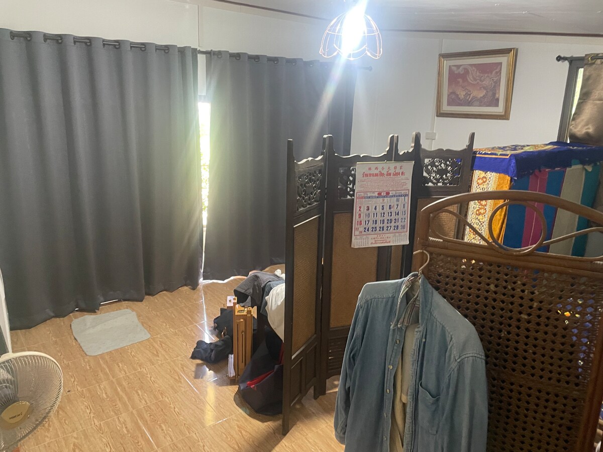 Gun cannabis Farm est un endroit relaxant avec toute la famille dans cet endroit paisible où séjourner. Si Bangkok est ennuyeux, vous pourriez vous détendre à seulement 1 heure de Bangkok. Vous pourriez venir porter votre tente pour vous reposer, ici vous pouvez voir le lever et le coucher du soleil, le temps est bon la nuit. Vous pourrez faire un barbecue et obtenir du poisson frais de votre pêche. Nous avons 1 chambre avec climatisation, 1 jardin et 2 salles de repos, donc pas beaucoup de penser que si vous avez une voiture, leur fera revenir votre énergie.