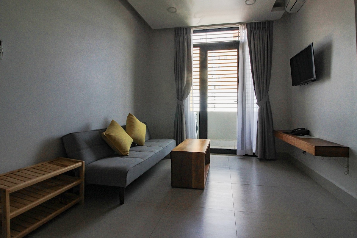 Lit King Size spacieux/salle de bain privée/salon et cuisine séparés avec équipements de base/balcon avec vue sur la ville ou sur le toit/accès par ascenseur/sécurité 24h/24/Service de chambre hebdomadaire/lave-linge/climatisation/Wifi gratuit/ Parking sur place, etc. Nous voulons que vous vous y sentiez comme chez vous ! Idéalement situé à Phnom Penh, cet appartement se trouve à environ 1 km du stade national olympique et du musée du génocide de Tuol Sleng, à 2 km du marché russe et du marché central, à 3,5 km du palais royal, du musée national, du Wat Phnom et du Riverside.
