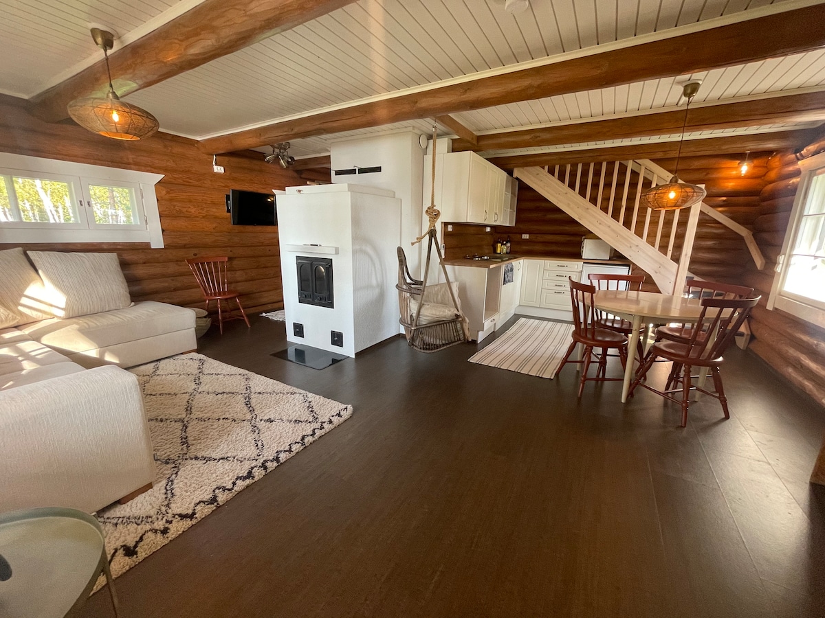 A year round destination, cosy cottage to enjoy and relax. There is also a hot tub at the backyard terrace, available for some extra cost. Two bedrooms, living room, kitchen, bathroom, traditional Finnish sauna and a cosy fireplace room with a bunk bed. Perfect for couples, friends and families. Housetrained dogs (max 2 ) are welcome.