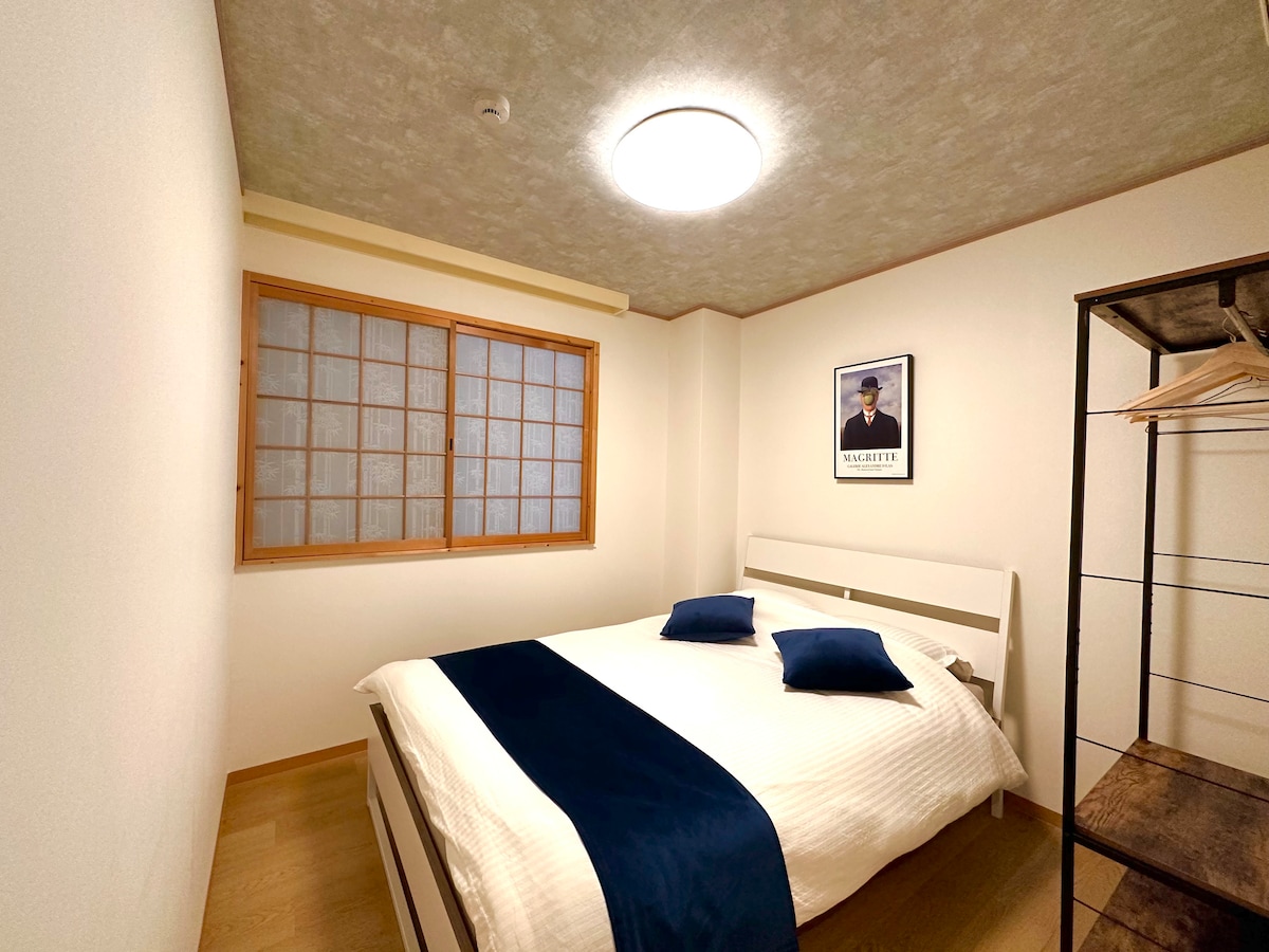 Métro 2 minutes, 50 m² 2 chambres, près de JR/Nankai, pour 4 personnes