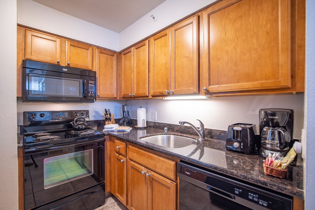 Promenez-vous sur la plage et le sable depuis notre complexe. Profitez des couchers de soleil sur notre Lanai. L'appartement comprend tout ce dont vous aurez besoin (cuisine entièrement équipée avec cuisinière, réfrigérateur, micro-ondes, cafetière, etc.). Lit king size, télévision à écran plat, wifi gratuit. Comptoirs en granit dans la cuisine et la salle de bain. Climatisation gratuite !