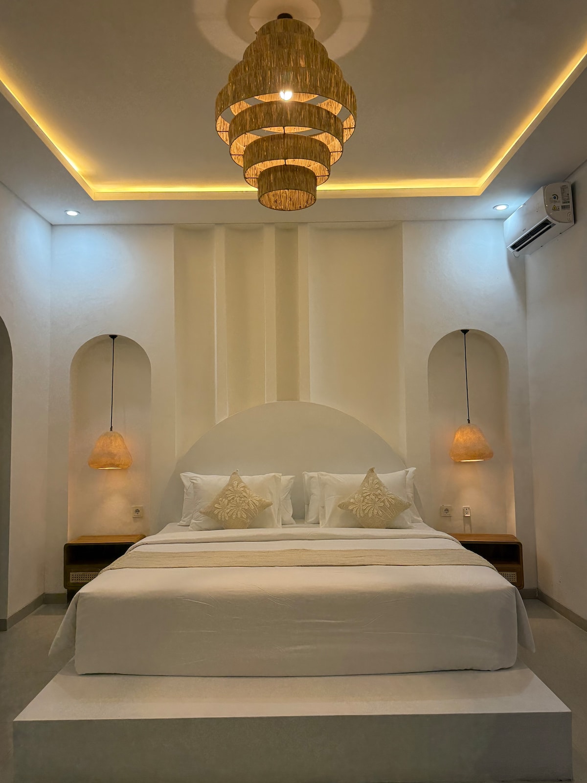 Villa Lumos – Boho Luxe, à 5 minutes à pied de la plage À quelques pas de la plage, la toute nouvelle Villa Lumos est une élégante retraite de deux chambres avec piscine privée, jardin luxuriant et design bohème minimaliste. Les deux chambres et le salon sont entièrement fermés avec la climatisation, mais peuvent s'ouvrir pour laisser entrer la brise. Profitez d'un bain dans la baignoire, détendez-vous dans l'espace de vie lumineux et aéré, ou détendez-vous à l'extérieur entouré de calme tropical avec vue sur le volcan Agung. Haut de gamme, mais décontracté : votre escapade parfaite à Bali.