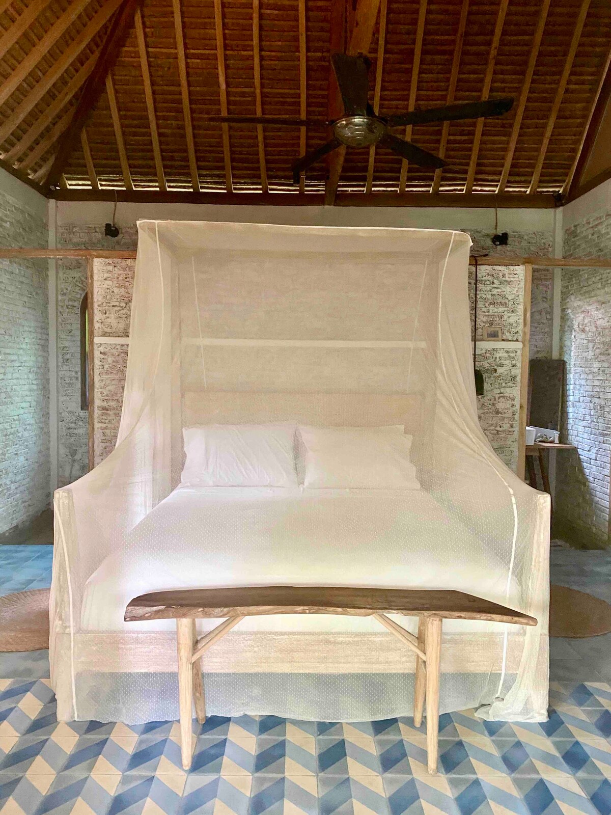 Faites une pause et détendez-vous dans cette oasis paisible. Proche de la plage et au calme. Le logement est à 5 minutes du surf en scooter, il est facile de louer un scooter avec un rack de surf, nous pouvons organiser la location d'un scooter, le transport depuis Jakarta en voiture où de l'aéroport local, Nusa Wiru, vous pouvez arriver en avion de Jakarta en une heure, cet aéroport est à 10 minutes de la maison.