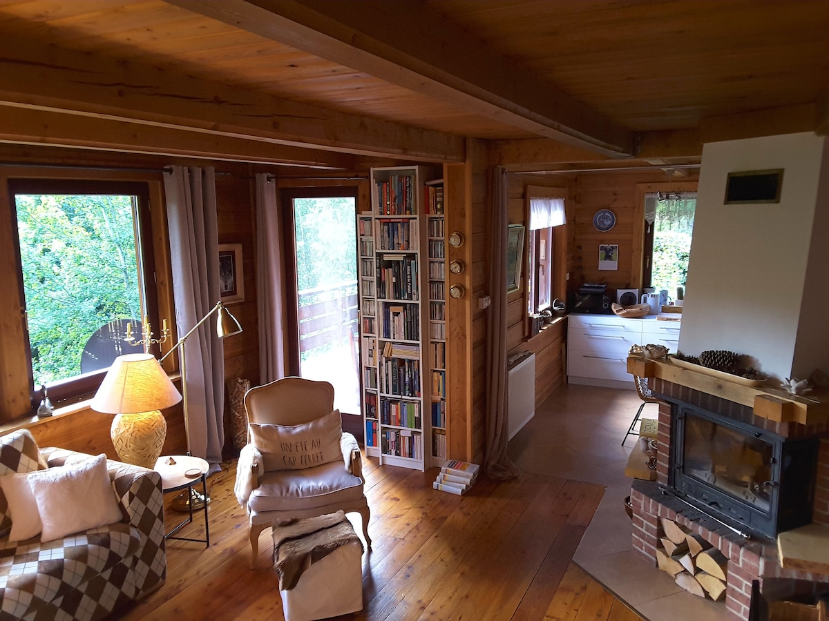 Maison en rondins avec vue sur les monts des Géants