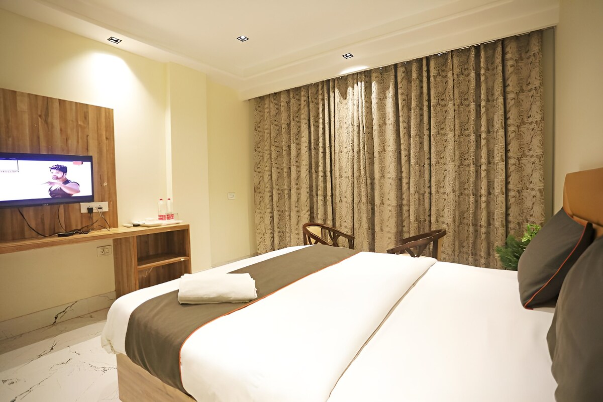 Chambre d'hôtel◆ confortable et élégante, parfaite pour les voyageurs en solo ou les petits groupes. Accès ◆facile à : Hôpital ✔Sir Ganga Ram City – 500 mètres Hôpitaux ✔Apollo Spectra – 700 mètres Marché et station de métro de✔ Karol Bagh – 1 km Aéroport international✔ Indira Gandhi – 19,9 km La ◆chambre comprend une télévision, un mini-réfrigérateur et une salle de bain attenante. Restaurant ◆sur place avec de nombreuses places et climatisation. ◆Espace de réception accueillant avec canapés moelleux, télévision et accès par ascenseur.