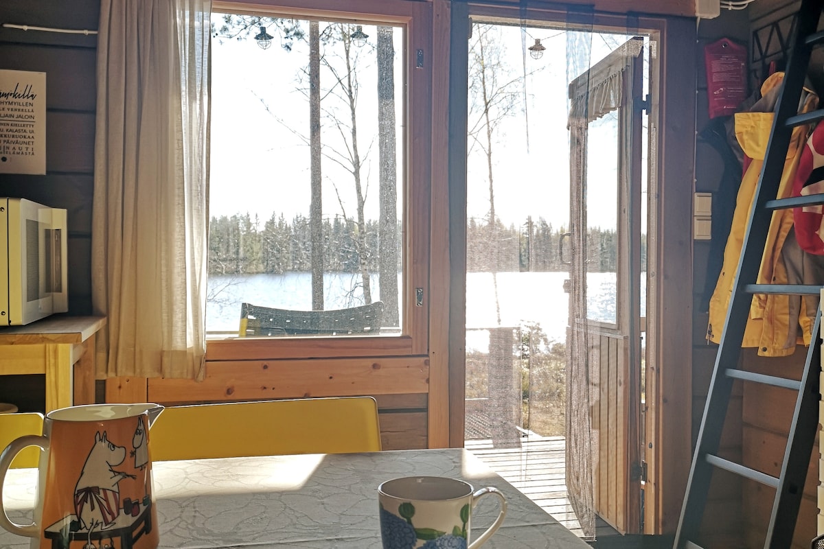 Un endroit chic près de la maison. À l'intérieur, vous avez un espace compact avec un canapé/lit (3x3m). Sur le grand patio, vous pouvez griller. Vous pouvez utiliser le sauna et le jacuzzi quand vous le souhaitez. Le chemin direct vous mène sur la rive. Avec une cheminée au bord du lac, vous pourrez profiter d'une nuit magique. Situé bien et entouré de services multiples. Mon partenaire Kata et moi souhaitons que votre séjours soit un très bon séjour à Kukonhiekka ! Demandez aussi : - Un canoë - des planches de SUP