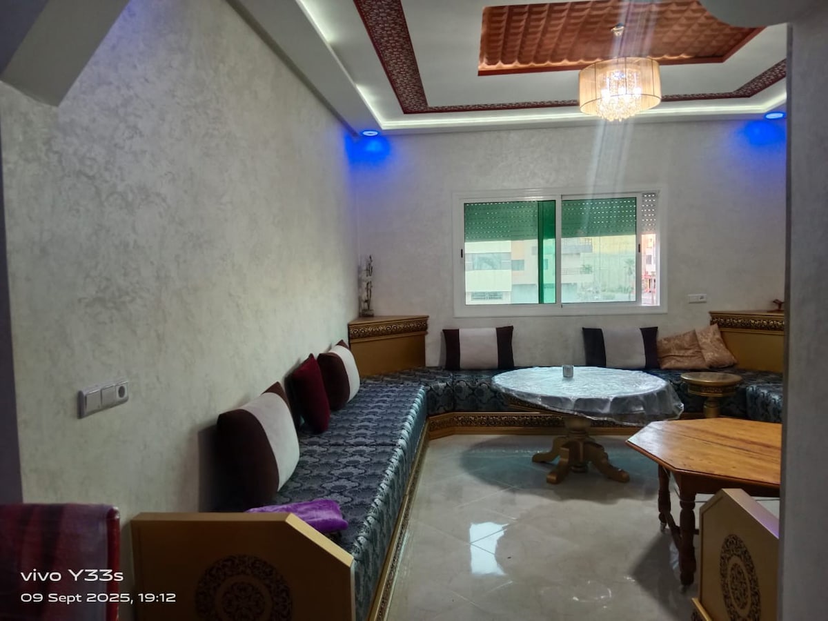 ✨Bienvenue dans ce bel appartement spacieux et lumineux à Kénitra ! Pas loin de la plage Mehdia , il est situé dans une résidence calme et sécurisée, il dispose de 2 chambres confortableset lumineux, d’une cuisine équipée, d’un salon spacieux avec table à manger . Idéal pour familles et couples voyageurs en quête de tranquillité. ℹ️ Remarque Conformément à la loi marocaine, les couples non mariés ne sont pas acceptés.