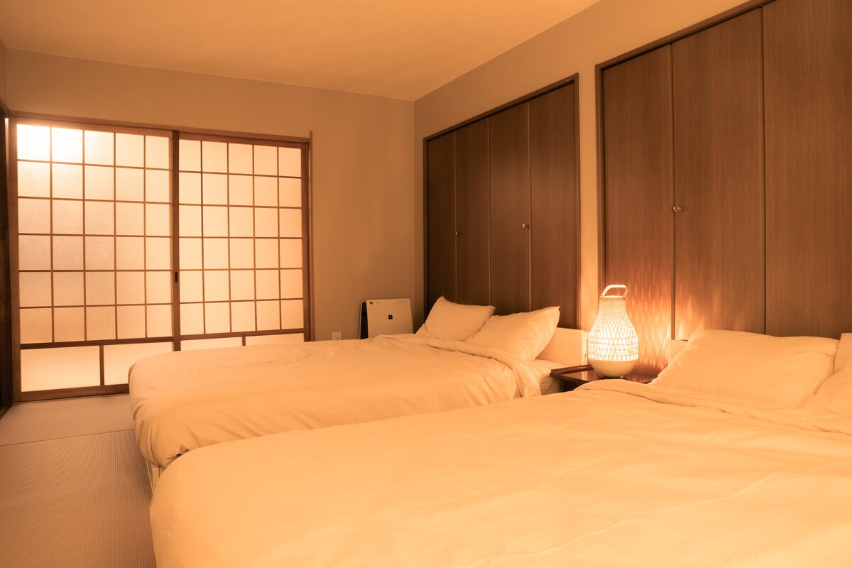 Séjournez dans une maison japonaise privée de 136 ㎡ magnifiquement conçue, à seulement 4 minutes de la station 天下茶屋站. Cette maison spacieuse de deux étages peut accueillir jusqu'à 8 personnes ; elle est parfaite pour les familles ou les groupes voyageant ensemble. Découvrez un design japonais authentique, des espaces en tatami et une atmosphère de jardin paisible en plein cœur d'Osaka.