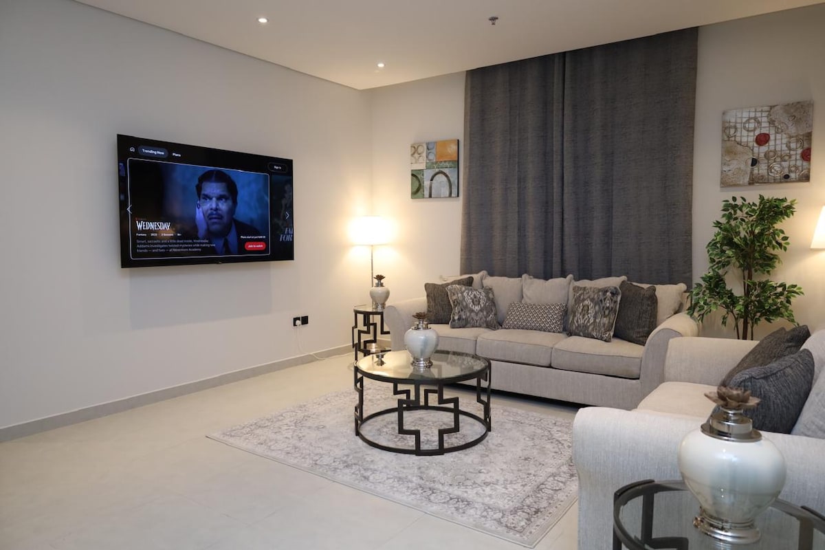 Détendez-vous dans cet endroit tranquille et élégant. Près de la corniche d'Al Rakah et à 100 mètres et près de Dhahran Expo et de l'Université Abdulrahman Bin Faisal Université Al Yamamah