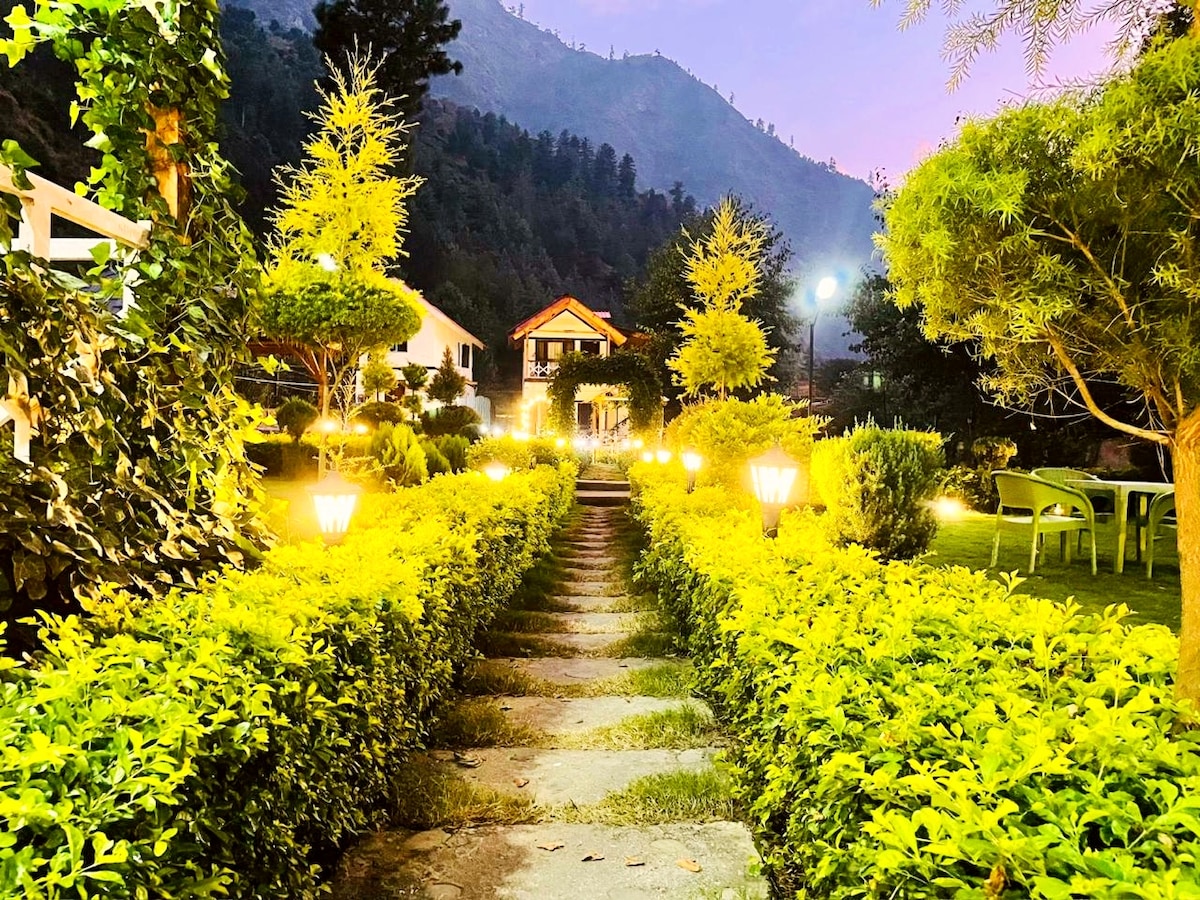 Fraîchement rénové ! Nous venons de terminer une rénovation complète du chalet le 20 octobre 2025, Dans un quartier élégant de Manali, à 5 minutes à pied de Mall Road, se trouve ce cottage exclusif avec des intérieurs fascinants et une vue magnifique sur les collines de Manali. Un chalet de colline typique est la quintessence de la vie luxueuse avec une décoration de style. Un cuisinier et un gardien formés sont sur place pour vous aider. Séjournez dans notre patrimoine 2BHK avec une cheminée en bois et un espace ouvert pour se promener et se sentir vivant.