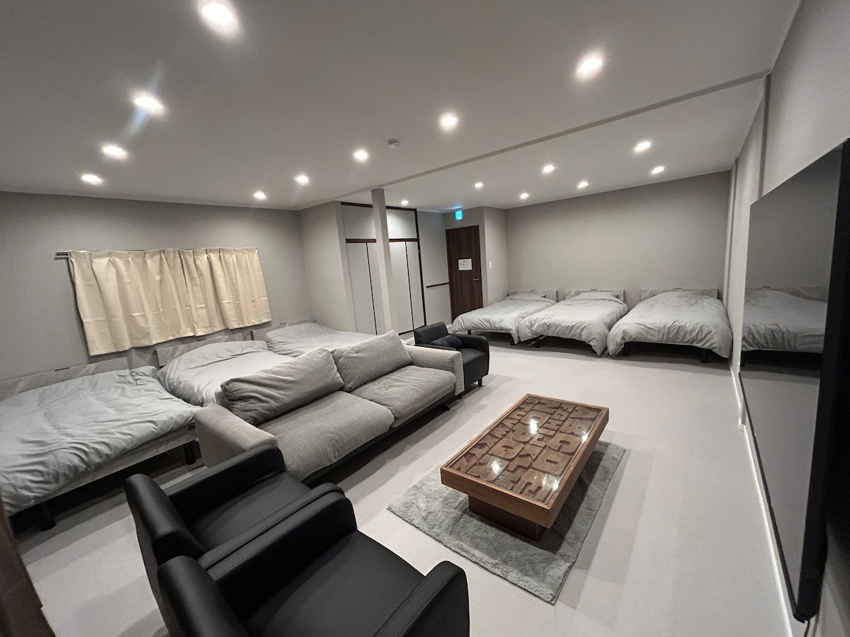 Vivez un séjour luxueux et extraordinaire tout en vous immergeant dans l'atmosphère persistante de Fukuoka.Vous pouvez utiliser les 2 grands espaces privés de type salon pour plusieurs familles, groupes, entreprises, hommes, femmes, enfants et adultes.Depuis le grand balcon sur le toit, vous pouvez regarder les avions passer.En plus de l'escalier extérieur, il y a un escalier de mezzanine qui chatouille le cœur des adultes, et vous pouvez en profiter selon l'occasion.Un sauna populaire (chambre pour une personne) est également installé.Une vingtaine de personnes peuvent séjourner ici. Par respect pour les voisins, nous n'autorisons pas les barbecues ou les activités bruyantes sur la terrasse extérieure après 20h00.Merci beaucoup pour votre collaboration.