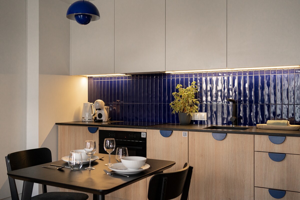 ⸻ Spacieux appartement de luxe de 60 m², idéal pour les familles et les séjours d'affaires. Deux pièces, fraîchement rénovées, offrent un repos confortable et une intimité. Des lits confortables, un canapé-lit comme espace de couchage supplémentaire et un coin salon spacieux sont disponibles. Vous y trouverez également un endroit où travailler. Une kitchenette entièrement équipée et une salle de bain moderne rendent l'appartement parfait pour les courts et longs séjours.