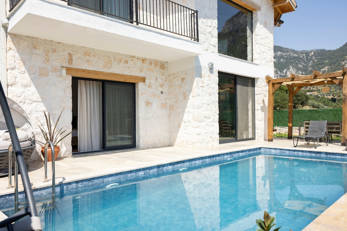 Kayaköy de Müstakil Havuz ve Jakuzili Taş Villa