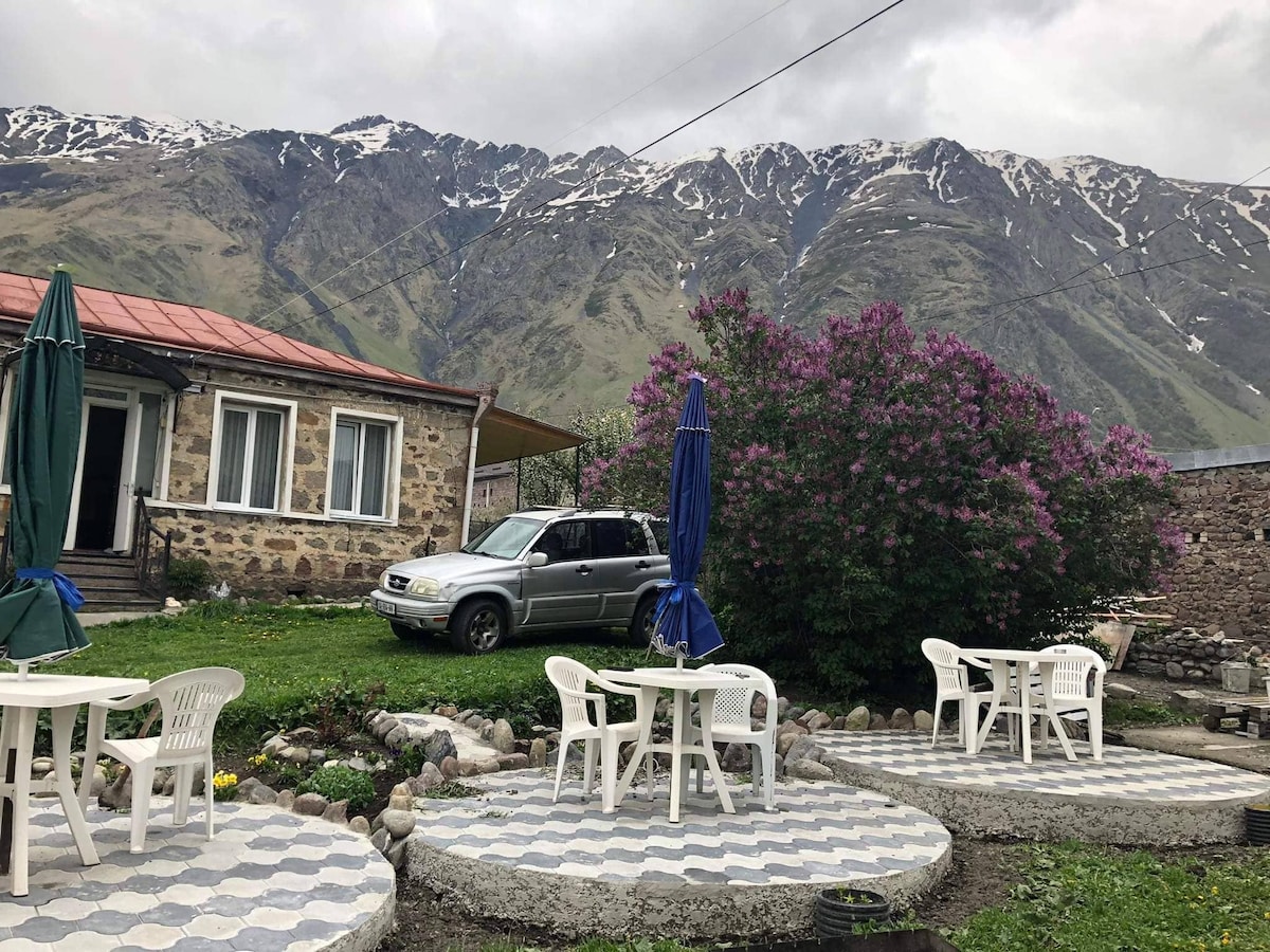 Girst house its in kazbegi town village sno . which is historic village friendly house and very peacfull. you can telax with the best views from the garden . 12 km to village Juta and to town kazbegi 8 km. near by river sno river . friendly host. nous sommes toujours prêts à accueillir nos voyageurs