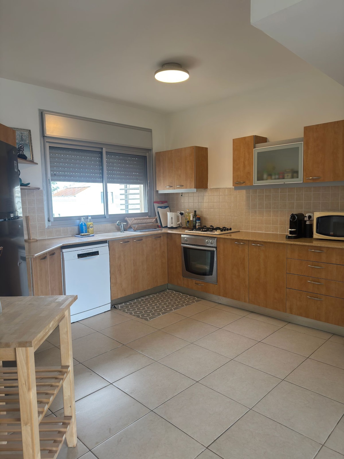 New, cozy and central apartment in Ra'anana. A minute walking distance to the main Ahuza st, in a quiet and comfortable street nearby. Kosher and separates meat and dairy dishes. Suitable for families of 5 person and very close to Synagogues across the city. The place offers facility for any need that is essential, and beyond. Has a shelter (Mamad). 1 king size bed for 2 people 1 bed that opens for 2 people a sofa that opens to a single bed for 1 We are looking forward hosting you!