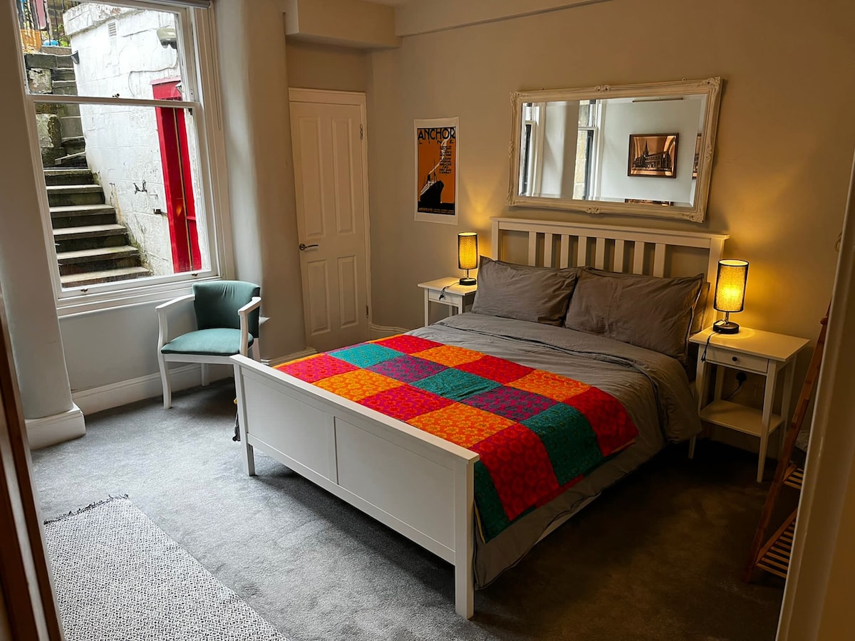 Emplacement fantastique et calme en plein cœur de Kelvinbridge, à quelques minutes à pied du parc, de l'université, de la galerie d'art et des boutiques, cafés et restaurants du West End. Rez-de-chaussée d'une maison de ville de Glasgow datant des années 1870, Grand salon - cheminée, table à manger. Kitchenette équipée - réfrigérateur, glacière, cafetière. Grande chambre ensoleillée, lit empereur, draps en coton, matelas naturel, rideaux épais. Salle de bain remplie de plantes, baignoire sur pied, douche à l'italienne. Wifi rapide. Télévision de 50 pouces. Musique Alexa. Contrôle du chauffage