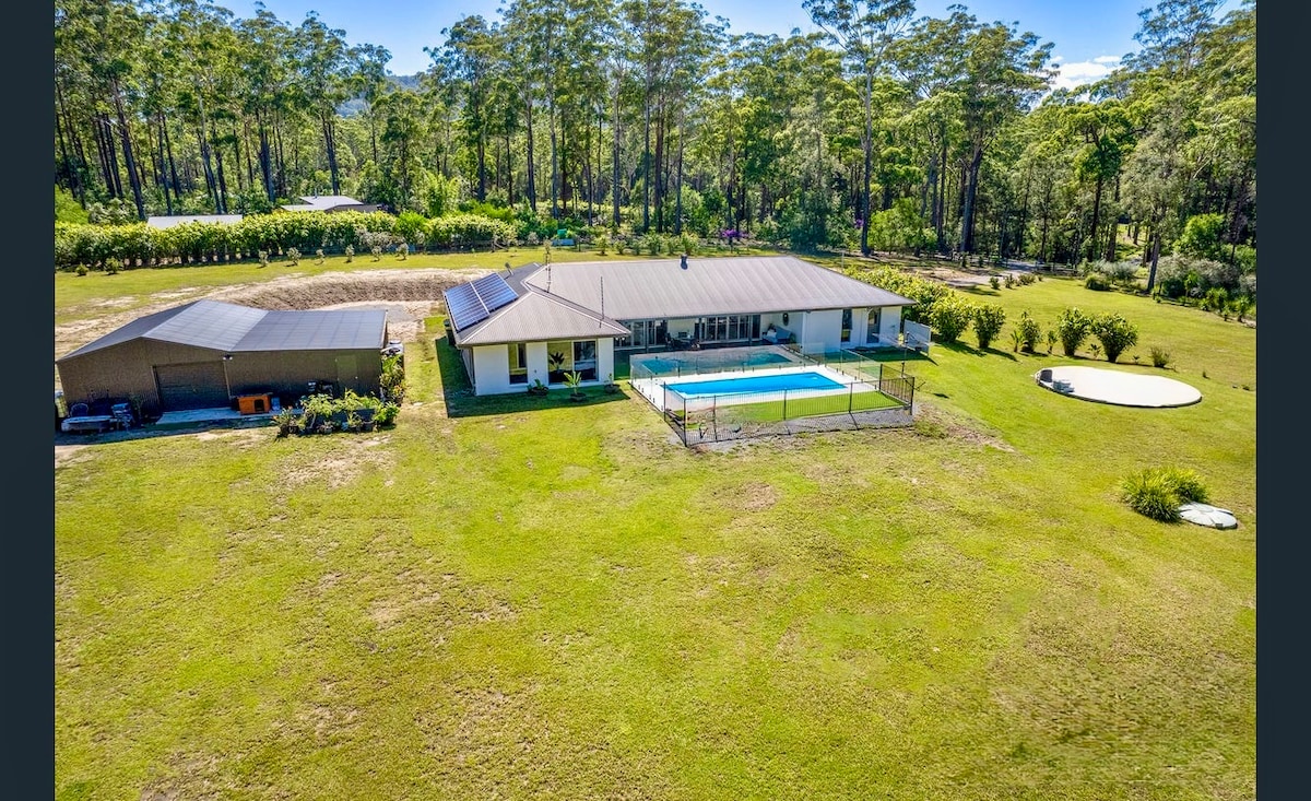 Arrivée autonome et privée. Cet hébergement exceptionnel se trouve au sommet d'une colline offrant une vue sur de nombreux couchers de soleil magnifiques, un barrage au loin et de majestueux gommiers et un sentier pédestre forestier au-delà. Il est situé à seulement deux minutes de la Pacific Highway, à seulement 10 minutes de Kempsey et à 25 minutes de Port Macquarie. Il est équipé du Wi-Fi, de la télévision et de Netflix, de la climatisation à cycle inversé, de robes intégrées ainsi que d'une piscine creusée, d'un spa chauffé et d'un parking couvert attribué.
