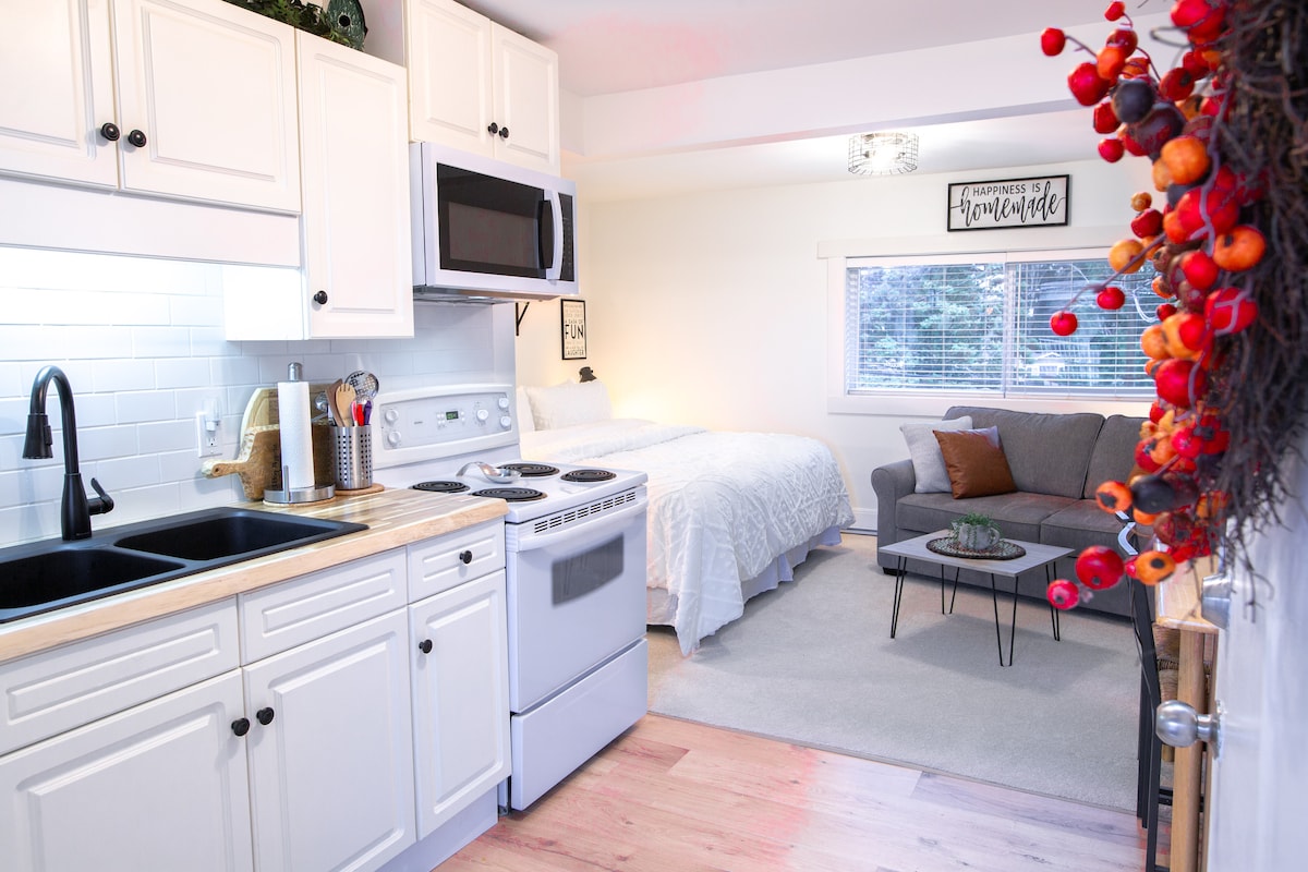 Check out this cozy studio at Snowline Lodge in Glacier! It’s just 30 minutes from Mt. Baker Ski Area and close to awesome hikes like Twin Lakes, Yellow Aster Butte, and Heliotrope Ridge Trail. No cleaning fees. No check-out checklist. Fully stocked. Pets are welcome! And you’re right next door to Chair 9, a great pizza and bar spot for post-hike or post-ski meals. There’s even a den with a pool table, ping pong and fireplace for some extra fun!