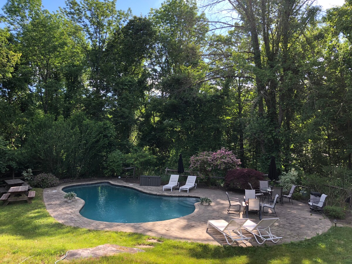 Bienvenue dans notre appartement confortable ! Cet appartement entièrement clos est attaché à notre maison principale sur une belle propriété de 3,5 acres à Brookfield. Profitez d'une cuisine, d'un salon et d'une chambre confortables, ainsi que d'une salle de bain propre. Les voyageurs ont accès à une piscine partagée de 32 pieds et 10 pieds de profondeur, à un studio d'artiste, à une table de billard, à un jardin, à un espace feu et à des sièges extérieurs. Nous fournissons un guide pour votre commodité. Réservez dès maintenant et découvrez un mélange parfait de confort, de créativité et de détente.