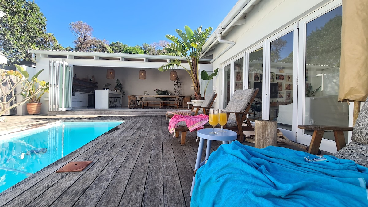 La maison de plage en bord de mer offre une vue sur la mer remarquable. À environ 10 m de la plage. Paradis du divertissement avec bar, four à pizza, brasero, piscine privée, espace braai intérieur et table de billard, Wi-Fi et onduleur. 5 chambres, toutes avec leurs propres salles de bains privées. Une belle cuisine ouverte et un coin repas/salon. Idéal pour toute la famille !