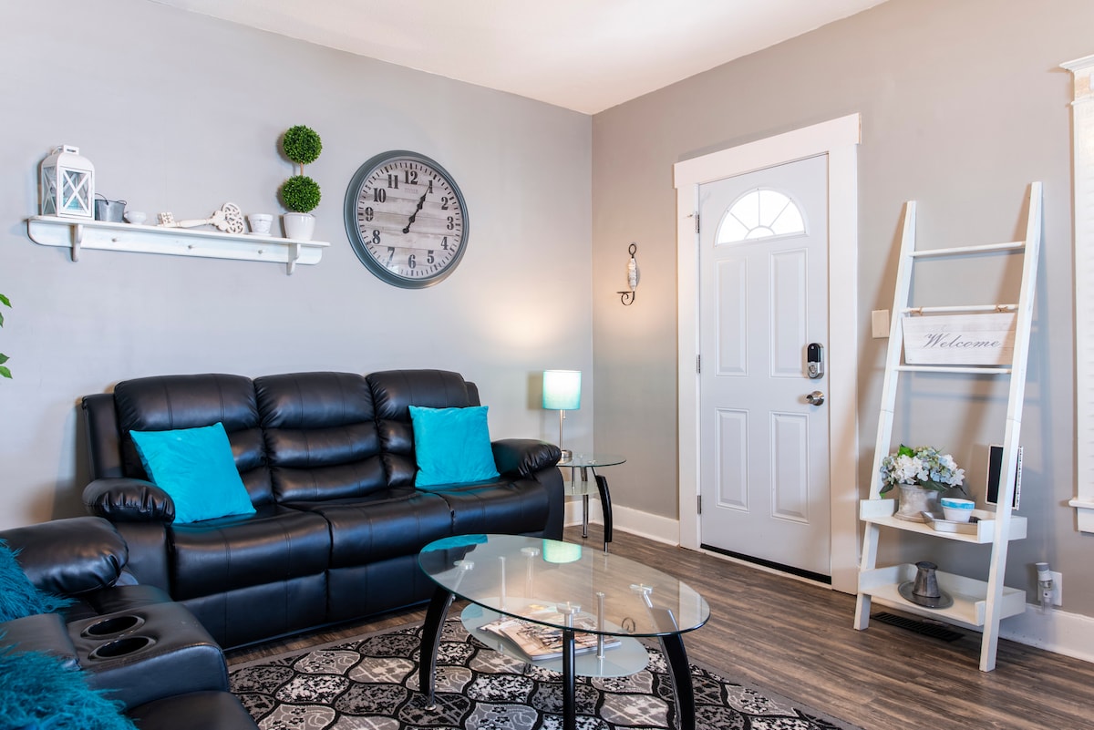 Adorable maison récemment rénovée à seulement 3 pâtés de maisons de Churchill Downs et à seulement quelques minutes de l'Université de Louisville et du stade cardinal, du Kentucky Expo Center, du Kentucky Kingdom et à 3 miles du centre-ville. Il se trouve également à quelques minutes d'Uber des distilleries Bourbon ! Notre maison dispose de 2 chambres confortables avec de nouveaux matelas, pouvant accueillir 4 personnes. Notre canapé est suffisamment confortable pour accueillir un 5e voyageur. Parking privé dans l'allée. 50 % de l'électricité de notre maison provient d'une énergie écologique et renouvelable.