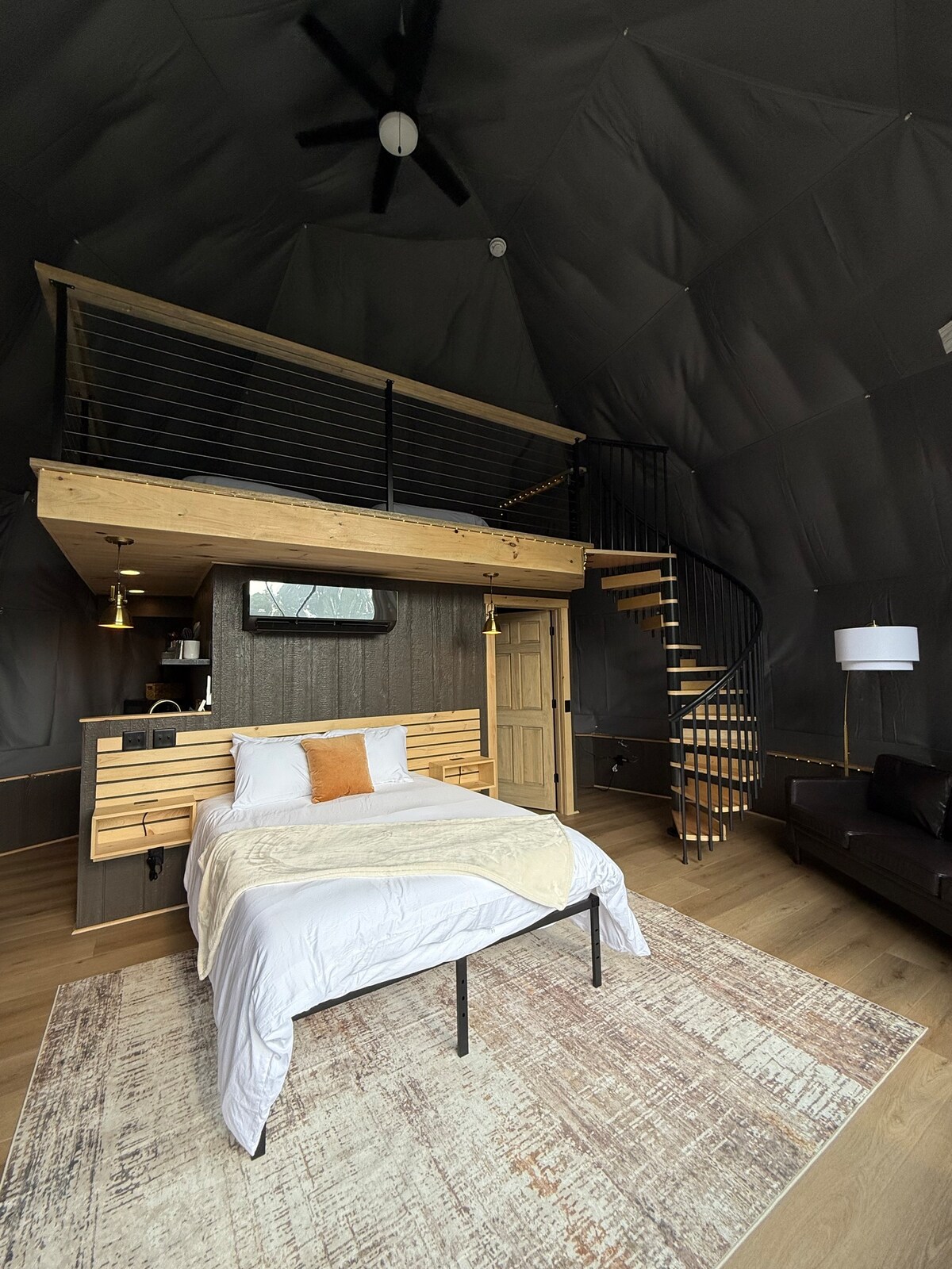 Profitez d'un séjour reposant dans ce dôme calme avec une intimité supplémentaire, à quelques minutes seulement de l'Ark Encounter. Une base confortable pour explorer et ralentir. Ce que vous apprécierez : • Lit Queen Size + 2 lits jumeaux dans le loft • Salle de bain complète privée. • Kitchenette avec plaque de cuisson, mini-réfrigérateur et micro-ondes • Chauffage et climatisation • Foyer pour des soirées détendues Éloignez-vous du bruit et installez-vous dans le calme.