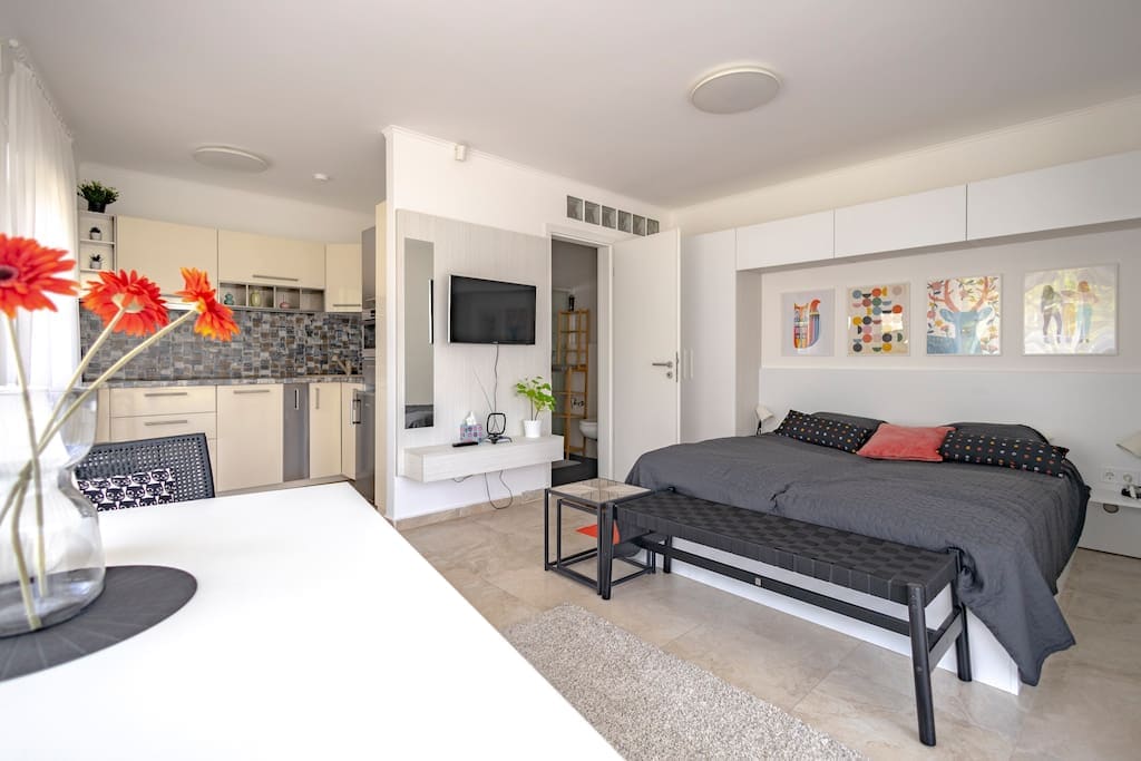 Le nouvel espace bien-être unique de la ville animée de Balaton, l'appartement Villa Bauhaus, accueille ses clients exigeants tous les jours de l'année ! Il offre de la détente dans la piscine sur le toit-terrasse, le jacuzzi intérieur, 2 saunas, un bassin froid et une piscine pour enfants. Un appartement de haute qualité avec un spacieux salon-cuisine-salle à manger, 1 chambre, salle de bain et une grande terrasse rend vos vacances confortables. Sa cuisine est équipée et mécanisée pour répondre à tous les besoins.