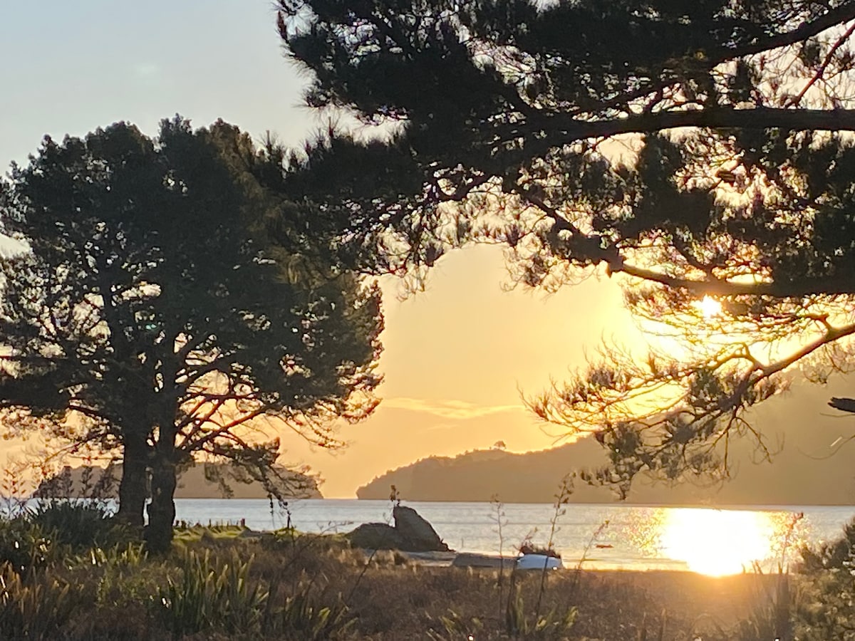 À 5-7 minutes en voiture de la ville de Coromandel Rafraîchissement récent avec nouveau tapis/kitchenette/salle de bain et pompe à chaleur parfaite pour les mois plus frais et les étés chauds. Il n'y a pas de four ni de plaques chauffantes, seulement un micro-ondes et un barbecue. Vue imprenable sur le port dans un environnement rural. La ville de Coromandel est à 5 minutes en voiture de superbes cafés, promenades et du chemin de fer local. Pas de recharge de véhicule électrique sur place. Borne de recharge à Coromandel Venez profiter de la paix.